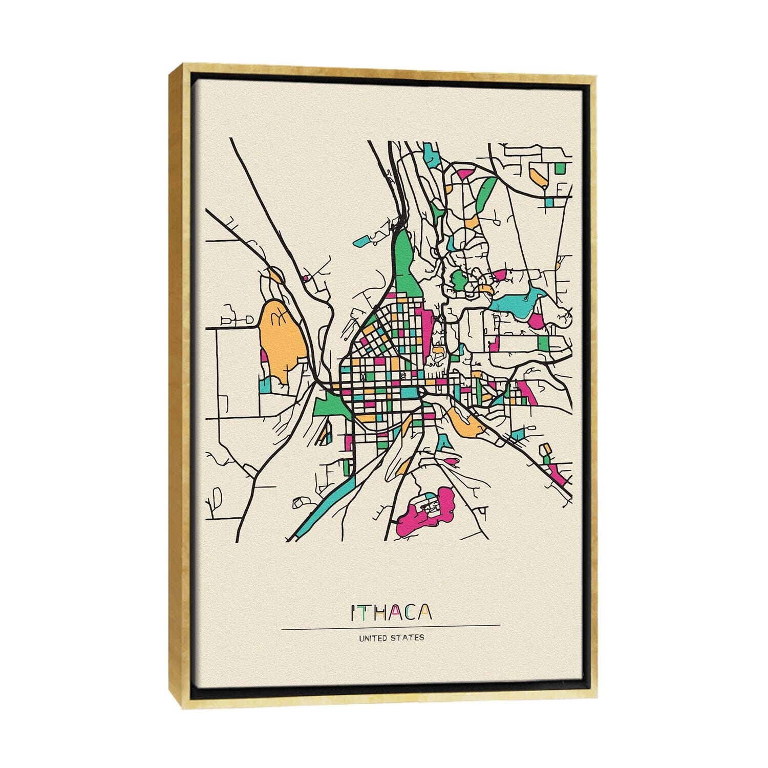 iCanvas "Ithaca, New York Map" by Ayse Deniz Akerman Framed
