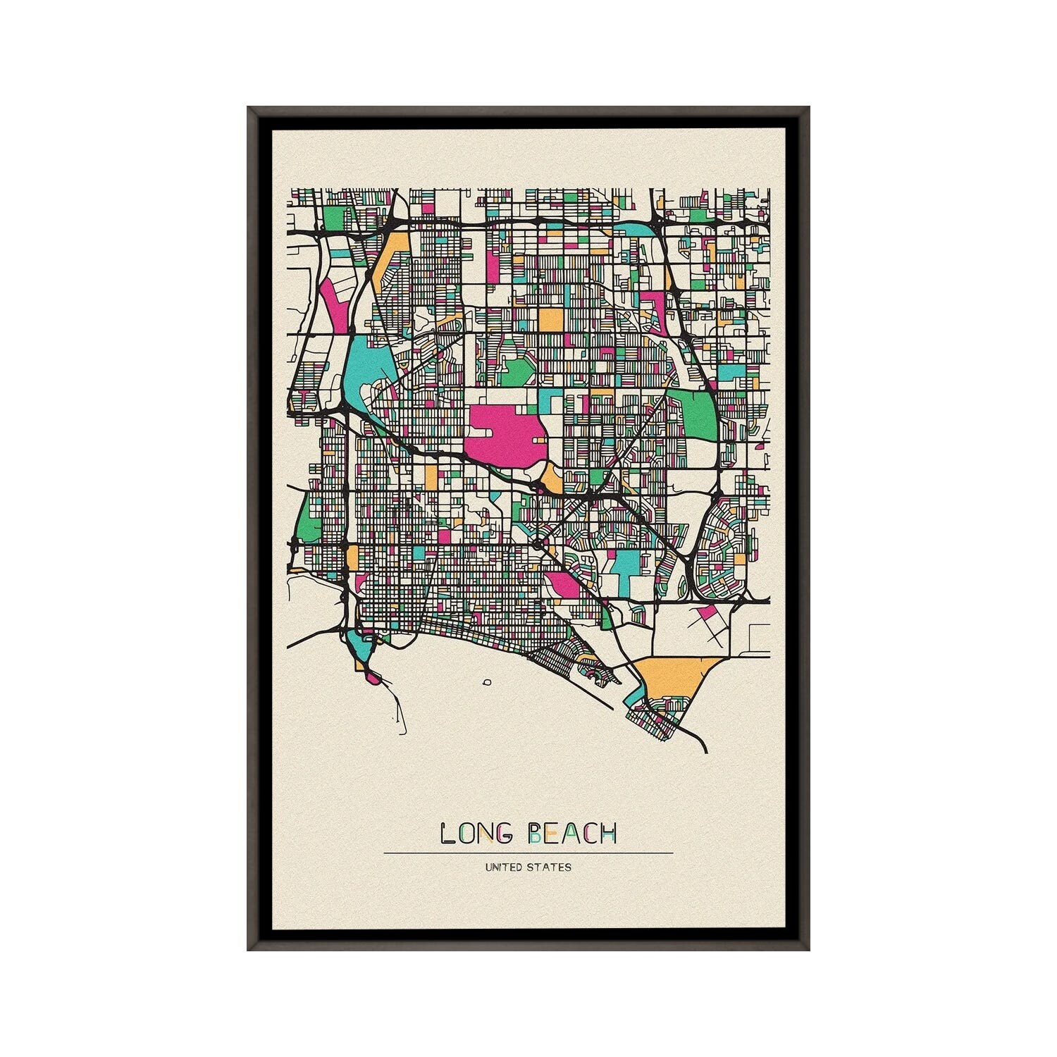 iCanvas "Long Beach, California Map" by Ayse Deniz Akerman Framed