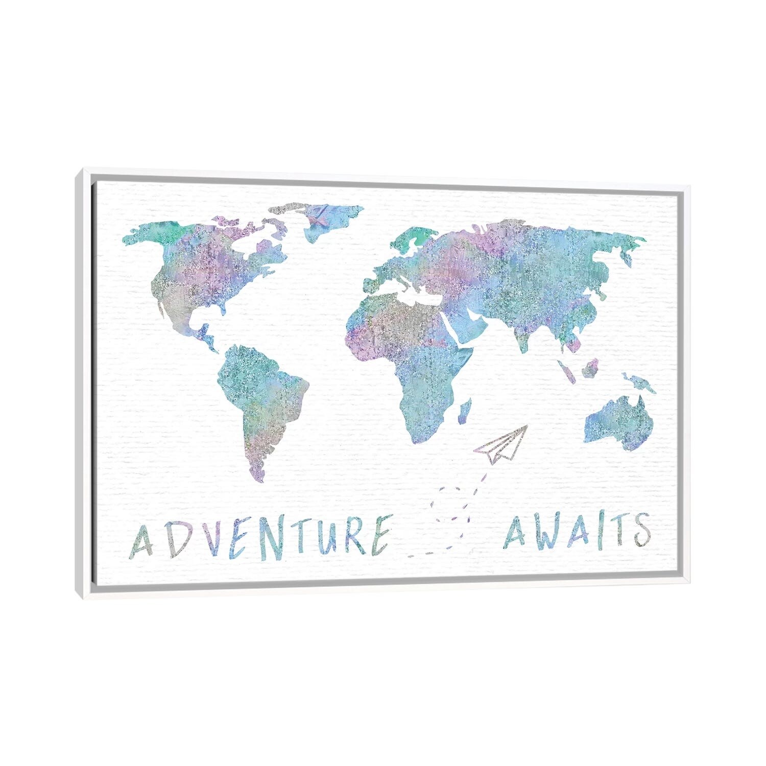 iCanvas "Adventure Awaits Map Metallic Rainbow" by Nature Magick Framed Canvas Print