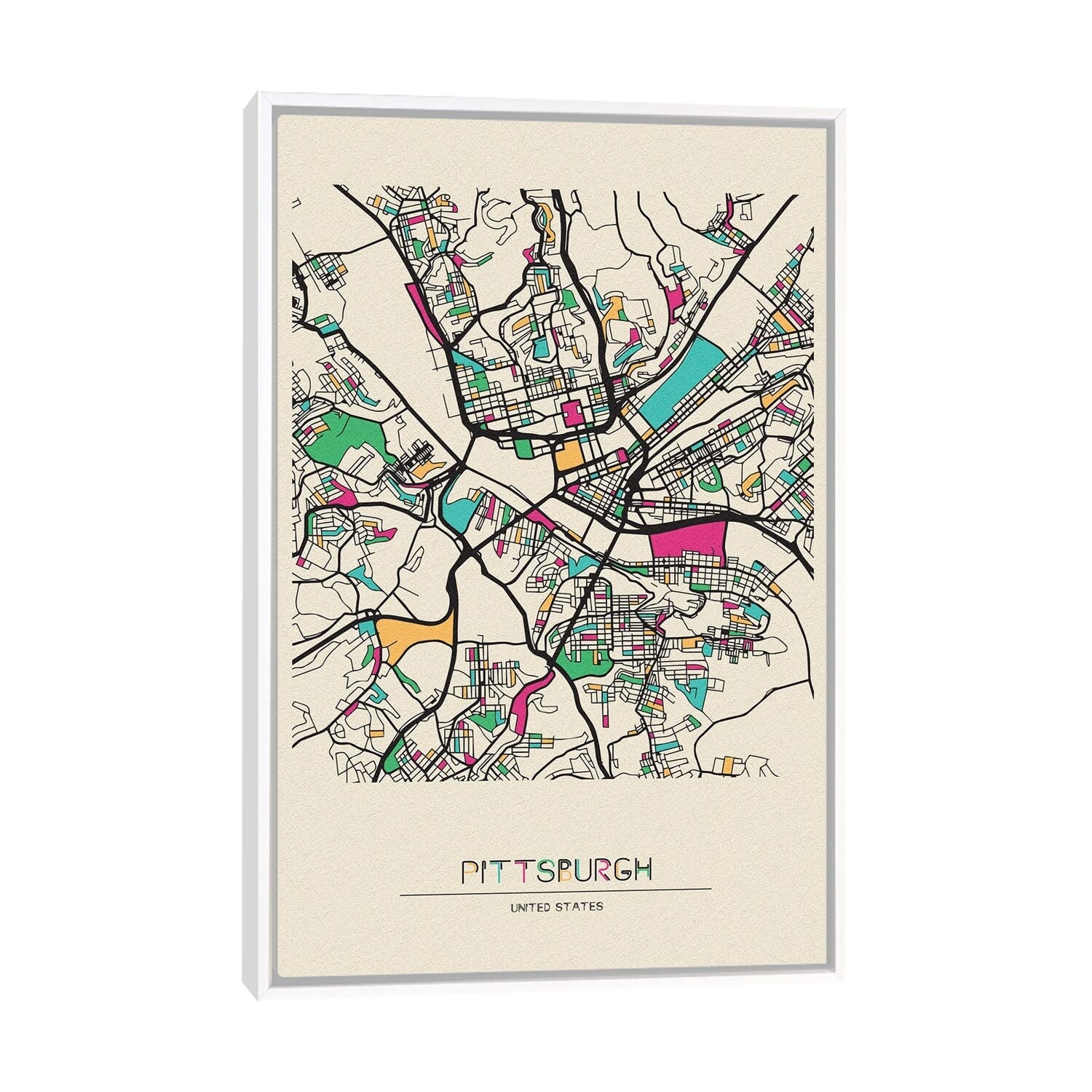 iCanvas "Pittsburgh, Pennsylvania Map" by Ayse Deniz Akerman Framed