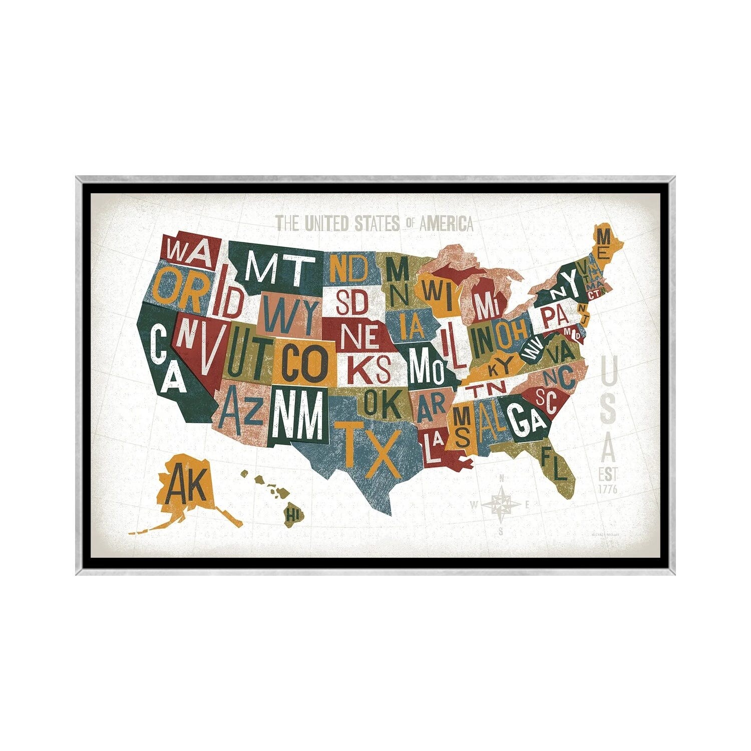 iCanvas "Letterpress USA Map Warm" by Michael Mullan Framed
