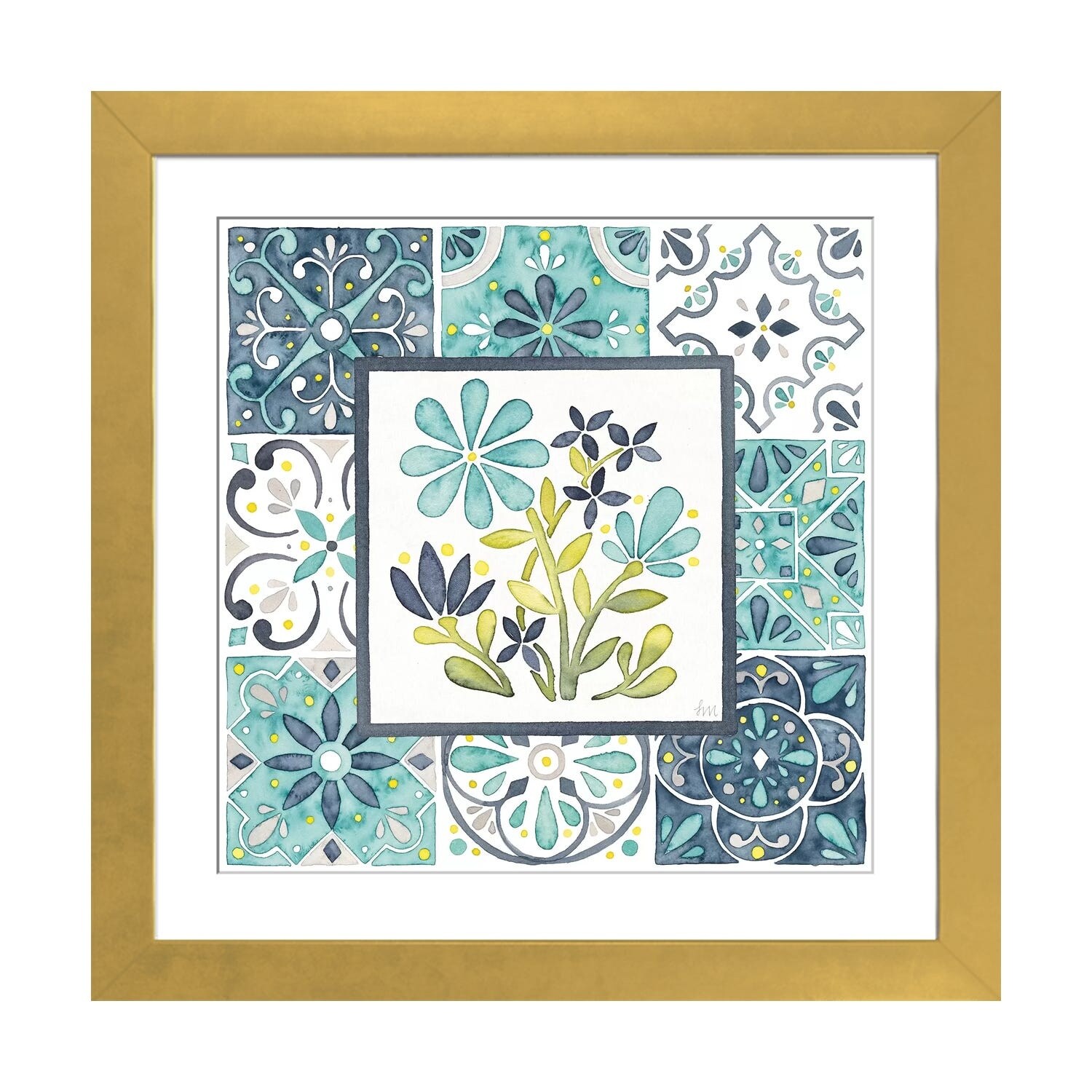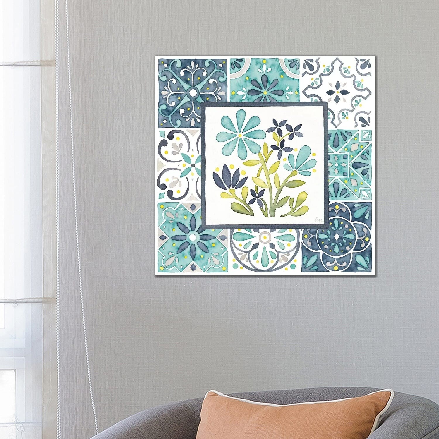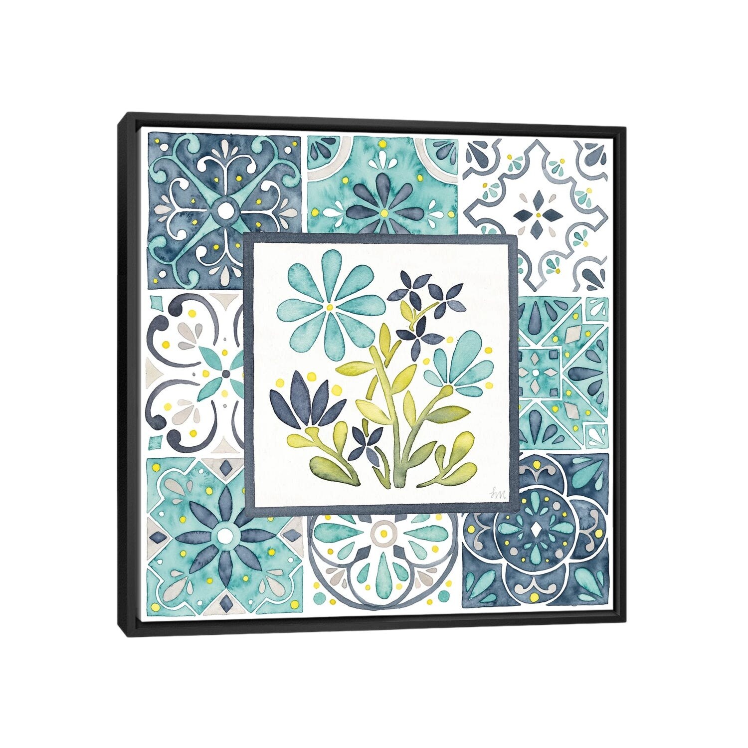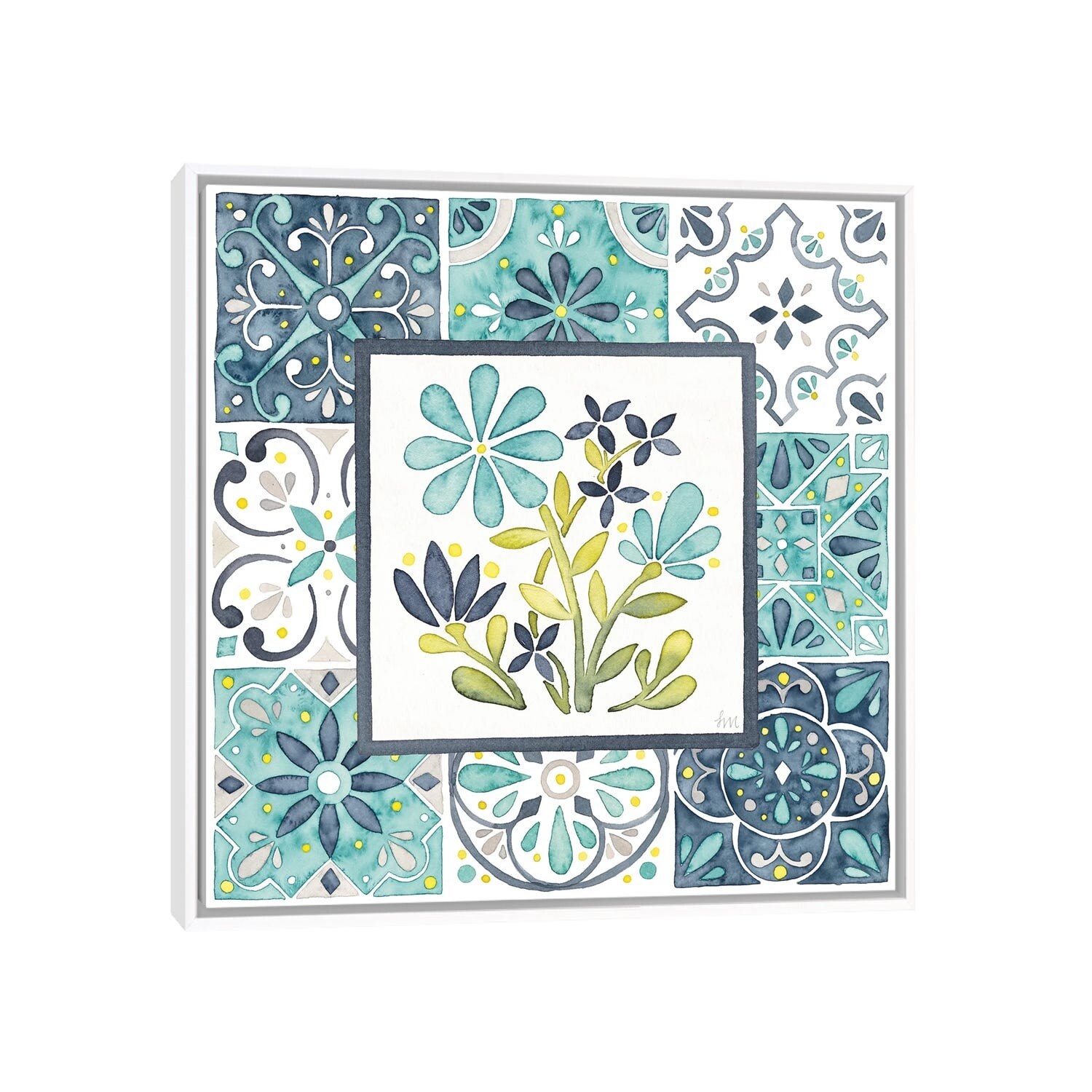 iCanvas "Garden Getaway Tile V Blue" by Laura Marshall Framed