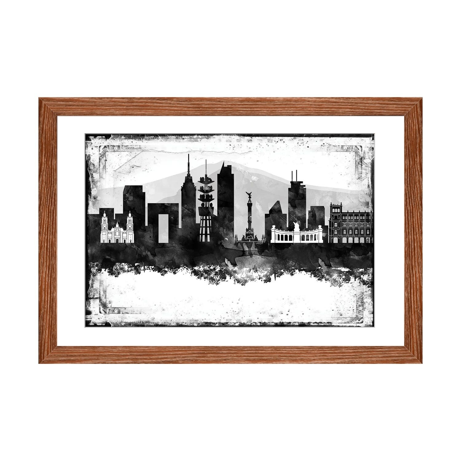 iCanvas "Mexico City Black And White Framed Skylines" by WallDecorAddict