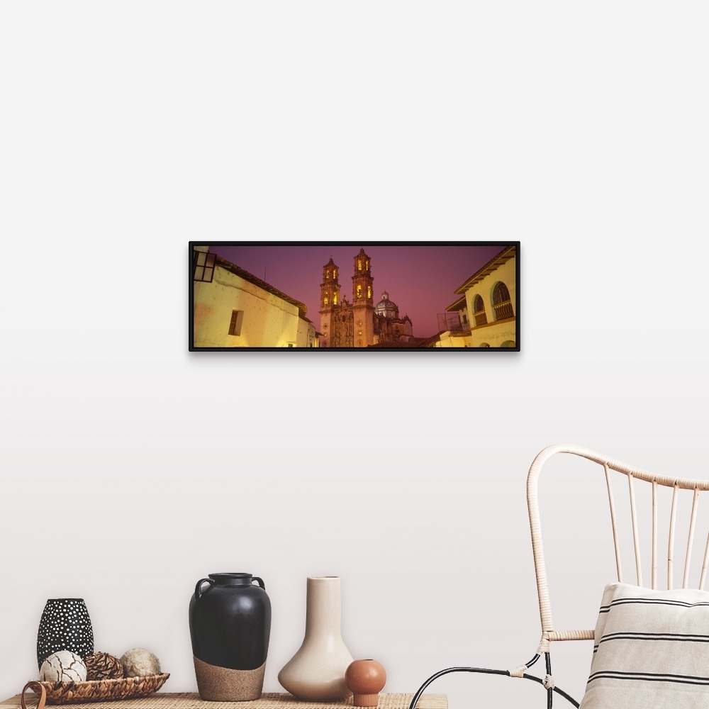 "Mexico, Taxco, Santa Prisa Cathedral" Black Float Frame Canvas Art