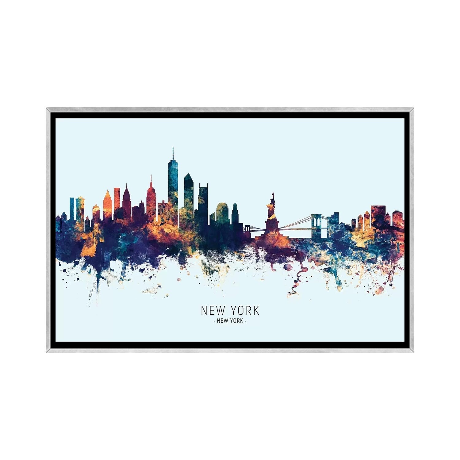 iCanvas "New York Skyline Blue Orange" by Michael Tompsett Framed