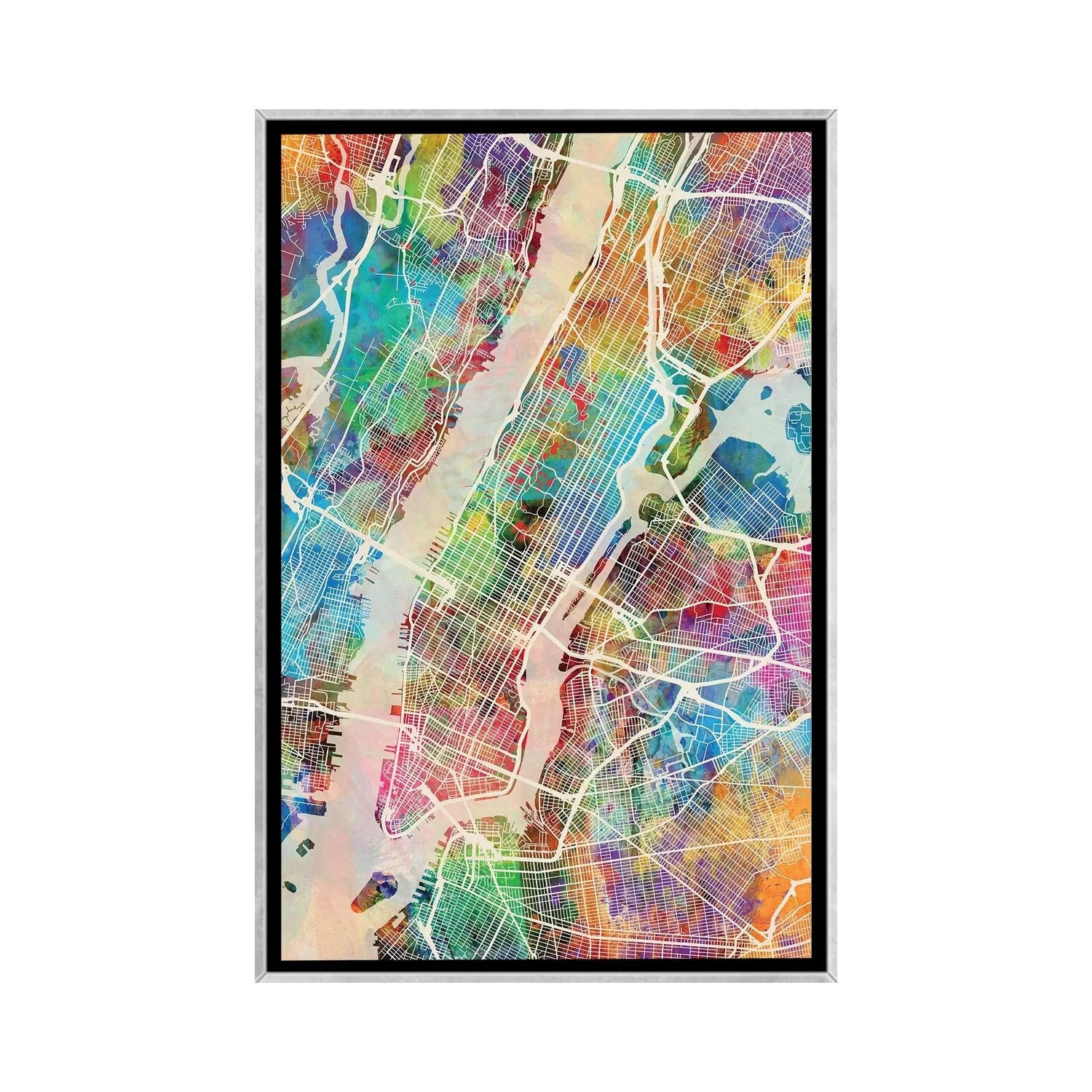 iCanvas "New York City Street Map III" by Michael Tompsett Framed