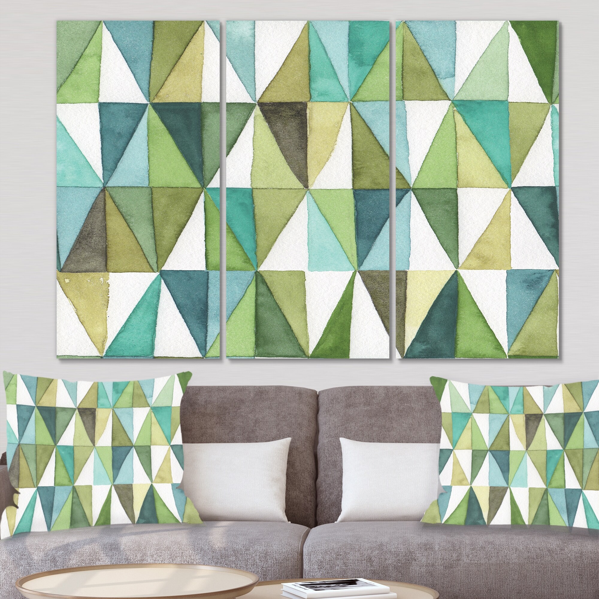 Designart "geometric Green Triangle III" Mid Century Modern Transitional Canvas Art