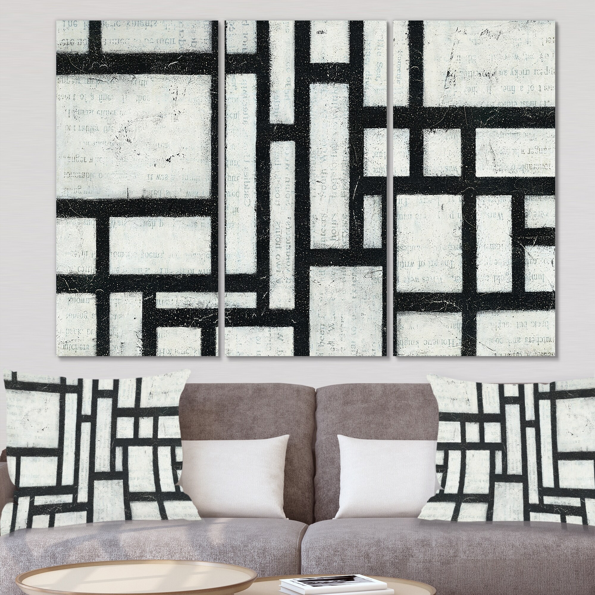 Designart "Black and White Labyrinth geometric" Mid Century Modern Canvas Art