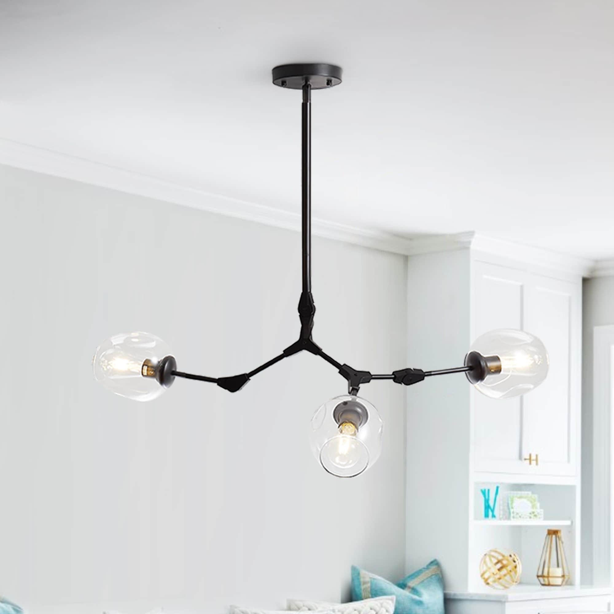 Oaks Aura Mid Century Modern 3-Light Black Pendant Light Adjustable Sputnik Chandelier