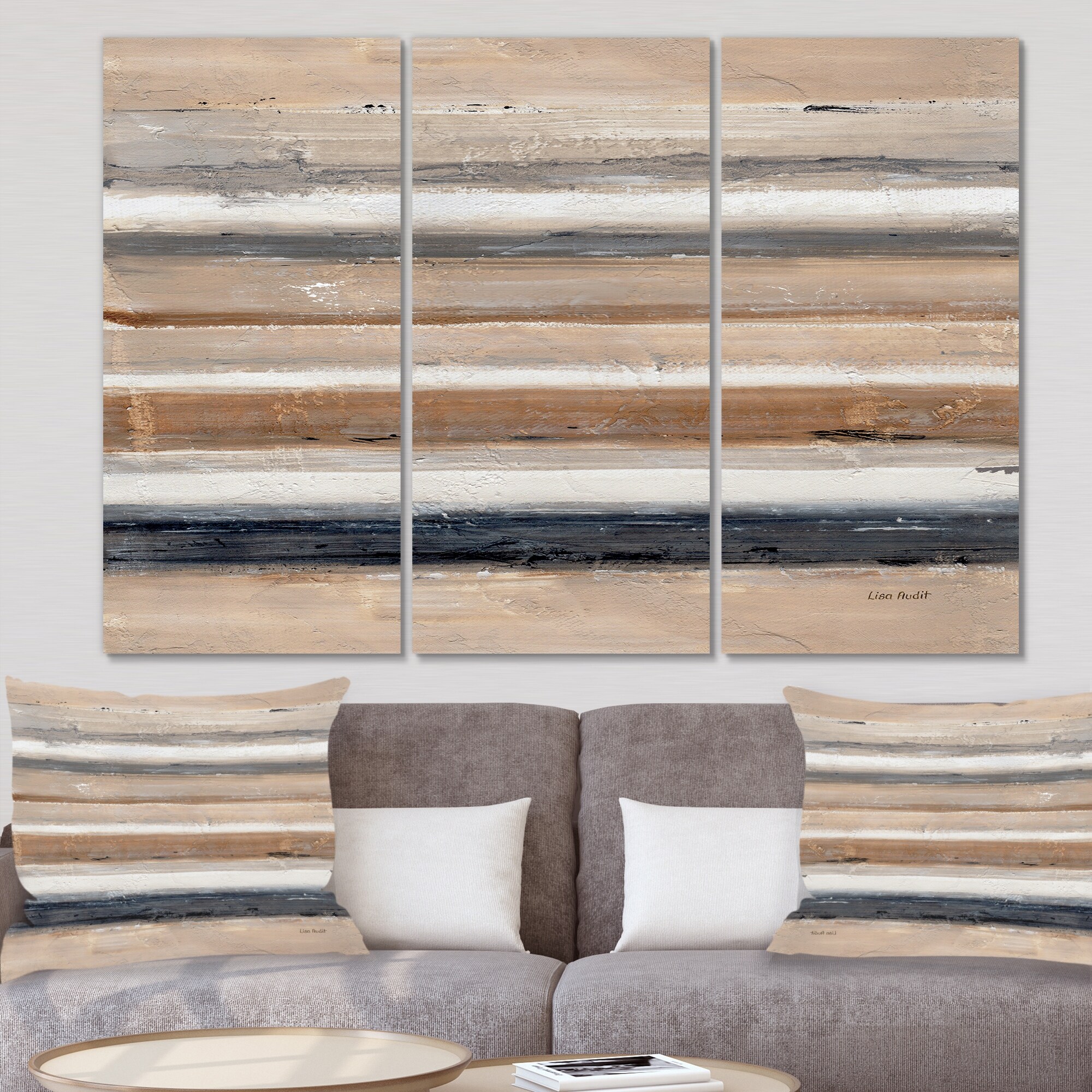 Designart "Geometric Circle Natural Balance III" Mid Century Modern Transitional Canvas Artwork Print