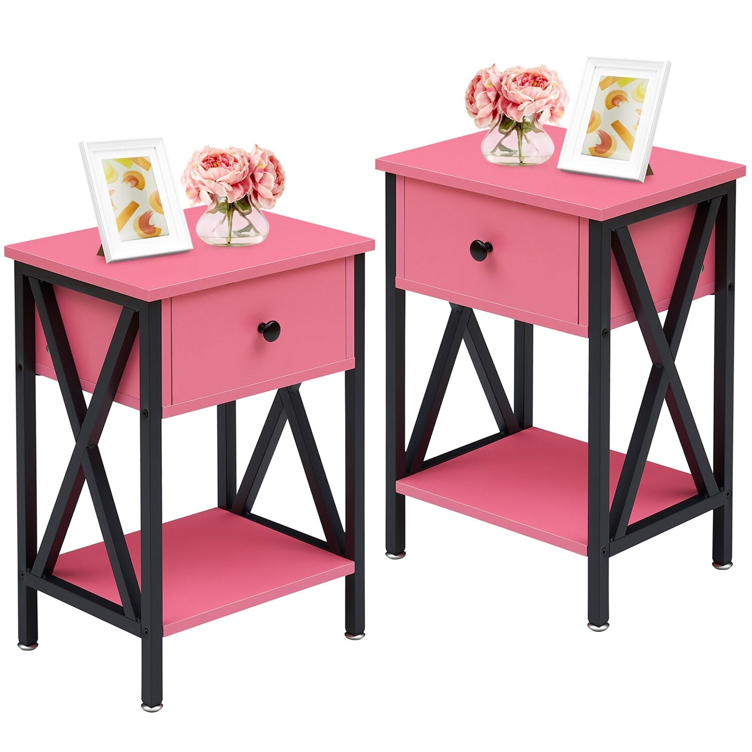 VECELO Mid Century Modern Nightstands Set of 2 with Storage Shelves