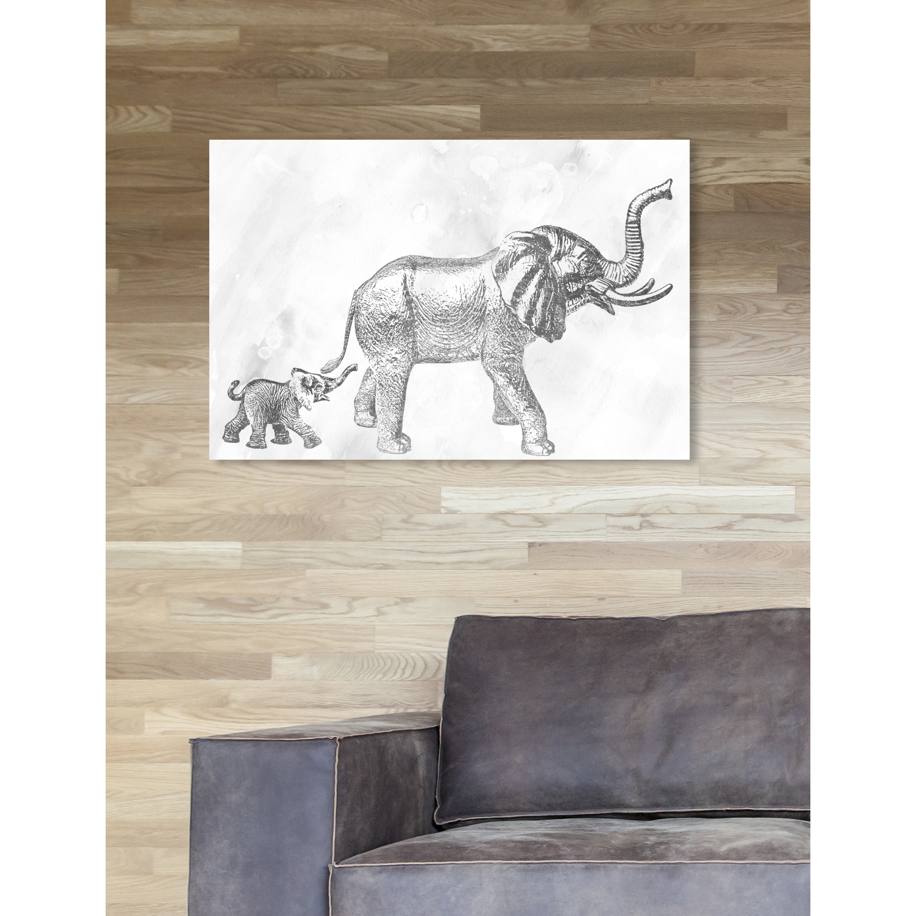 Oliver Gal 'Elephant Mom and Baby' Animals Wall Art Canvas Print - Gray, White