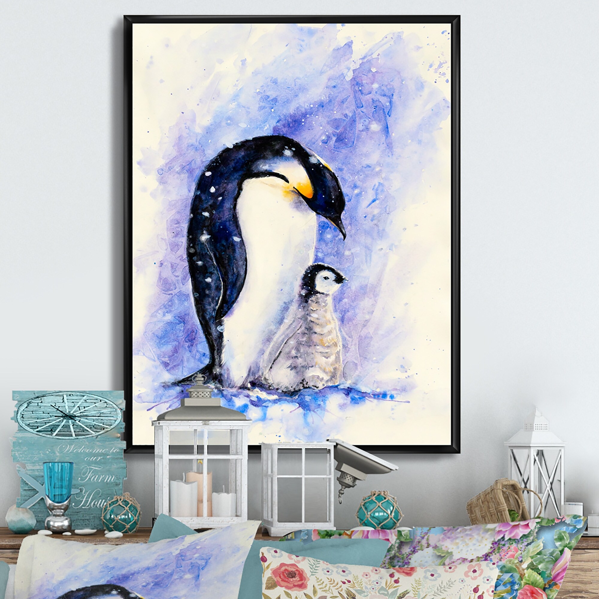 Designart "Royal Penguins Mom With Her Baby" Traditional Framed Canvas artwork