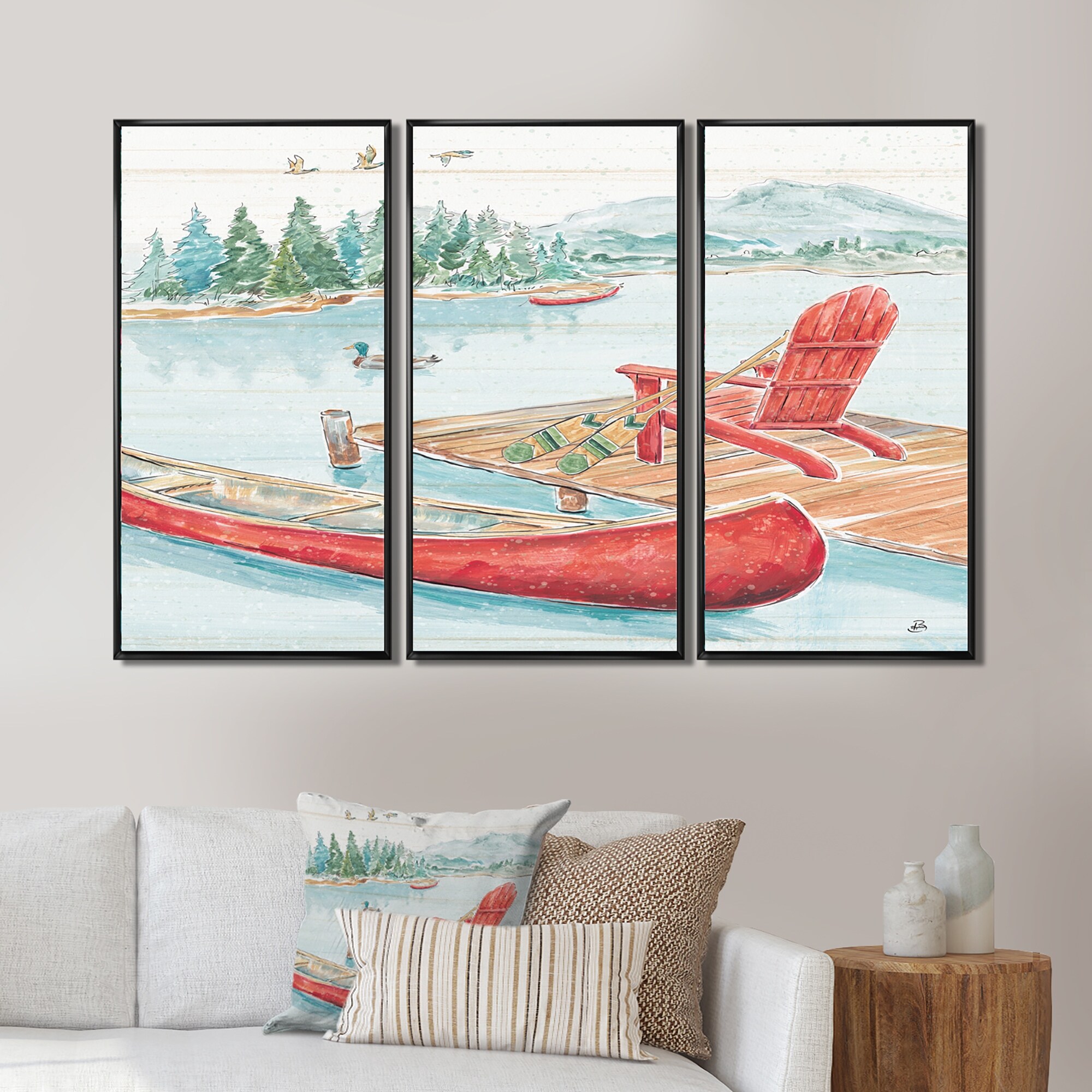 Designart "Lake Moments IV" Lake House Framed Art Prints Set of 3 - 4 Colors of Frames