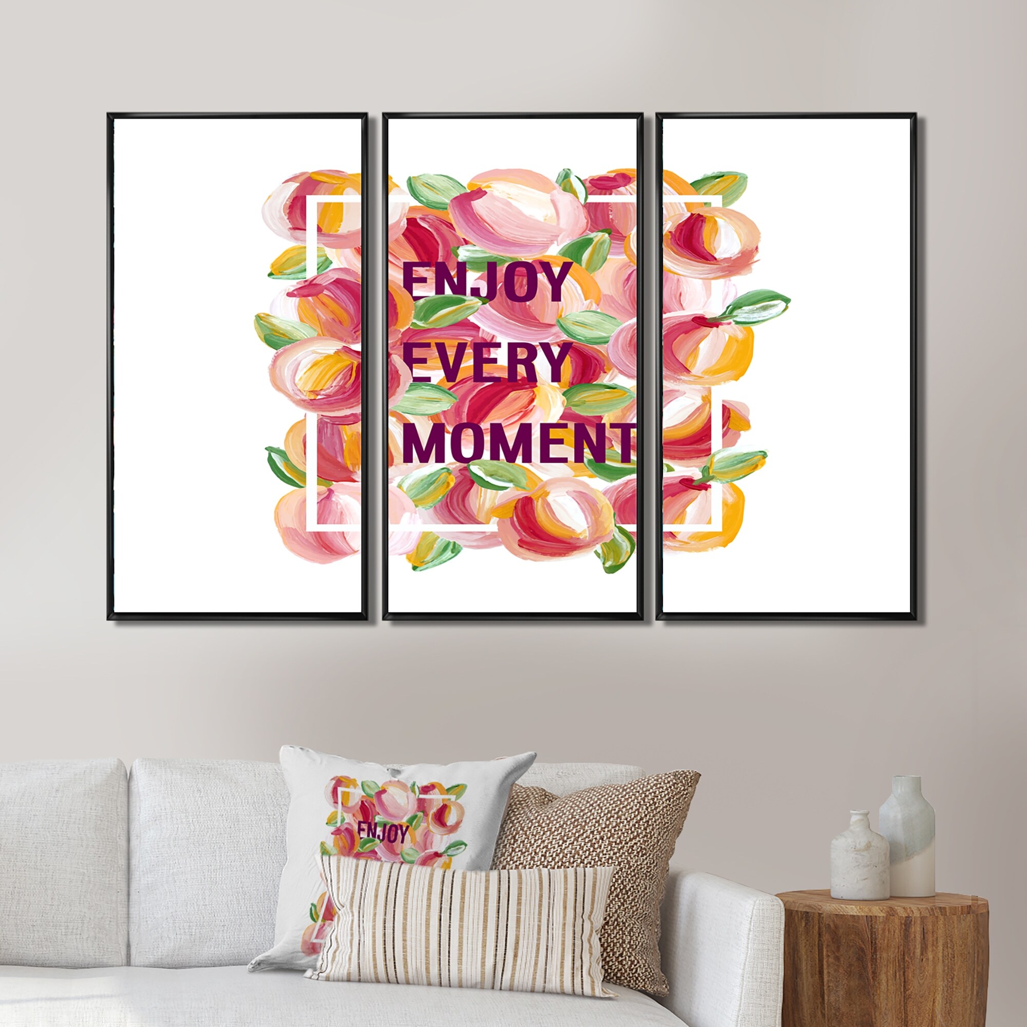 Designart "Enjoy Every Moment" Traditional Framed Art Prints Set of 3 - 4 Colors of Frames