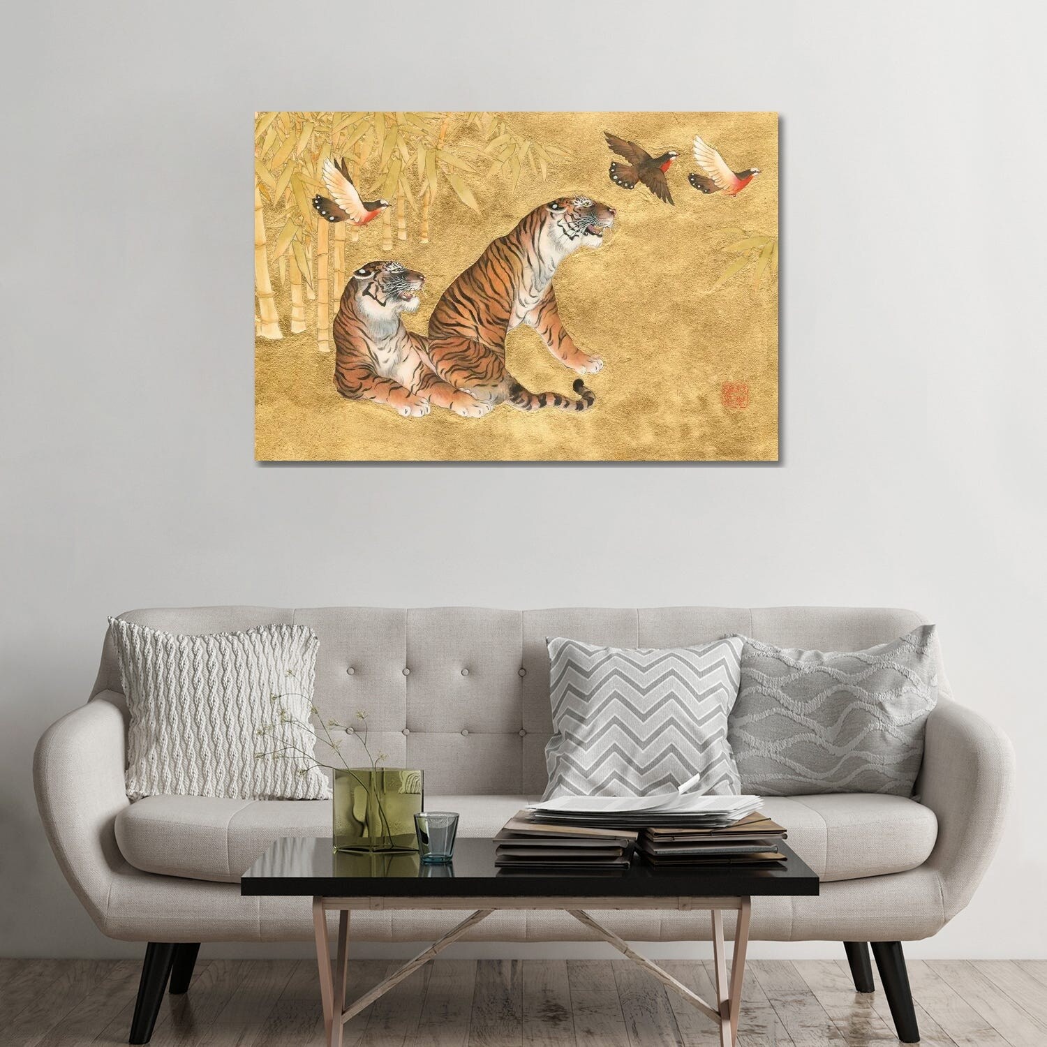 Oliver Gal Abstract Wall Art Framed Canvas Prints 'Our Moment' Paint - Gold, Gray