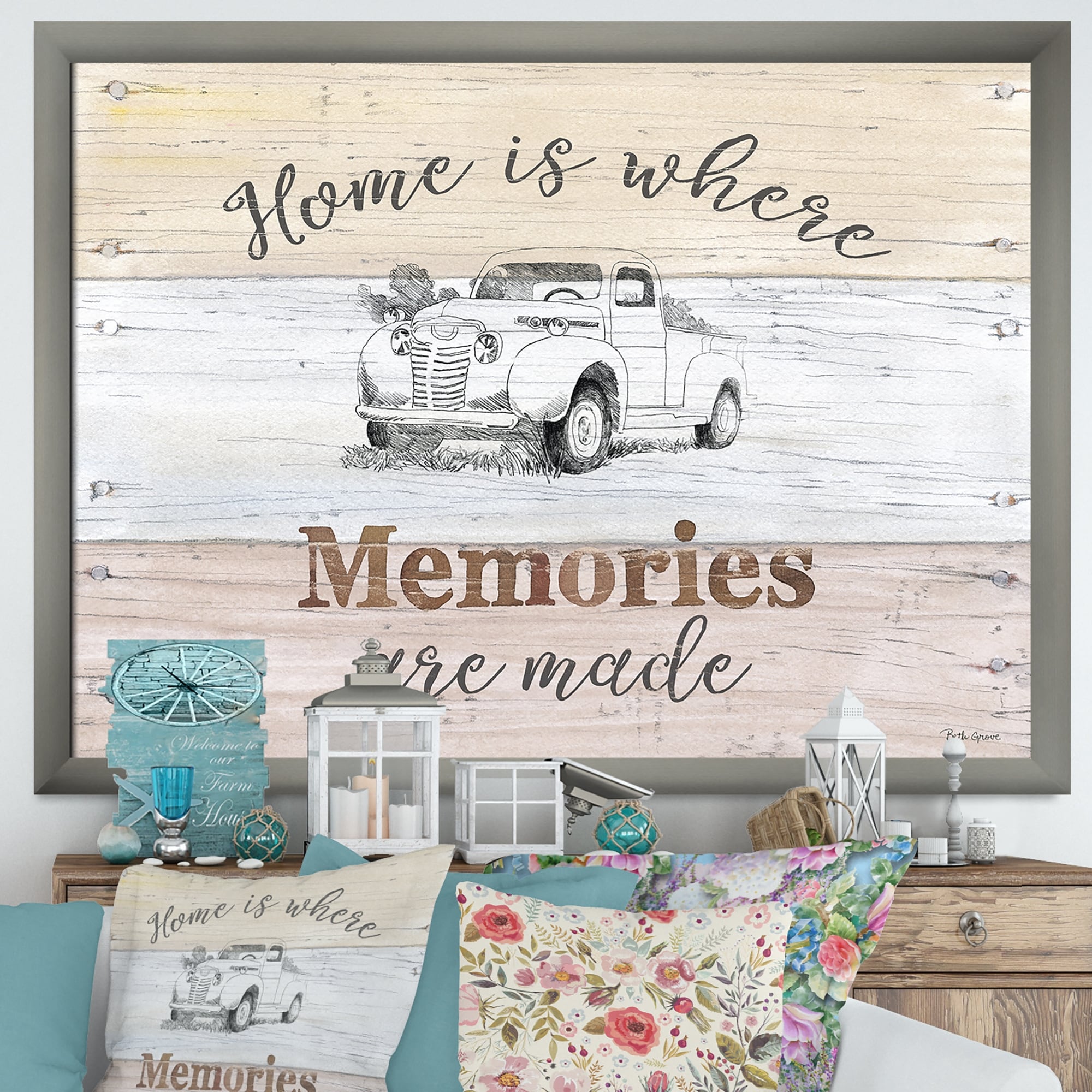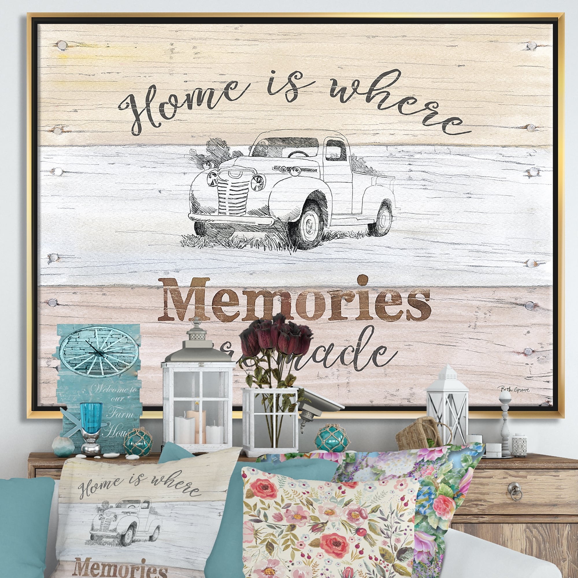 Designart "Farmhouse Moment Truck" Farmhouse Framed Canvas - Multi-color