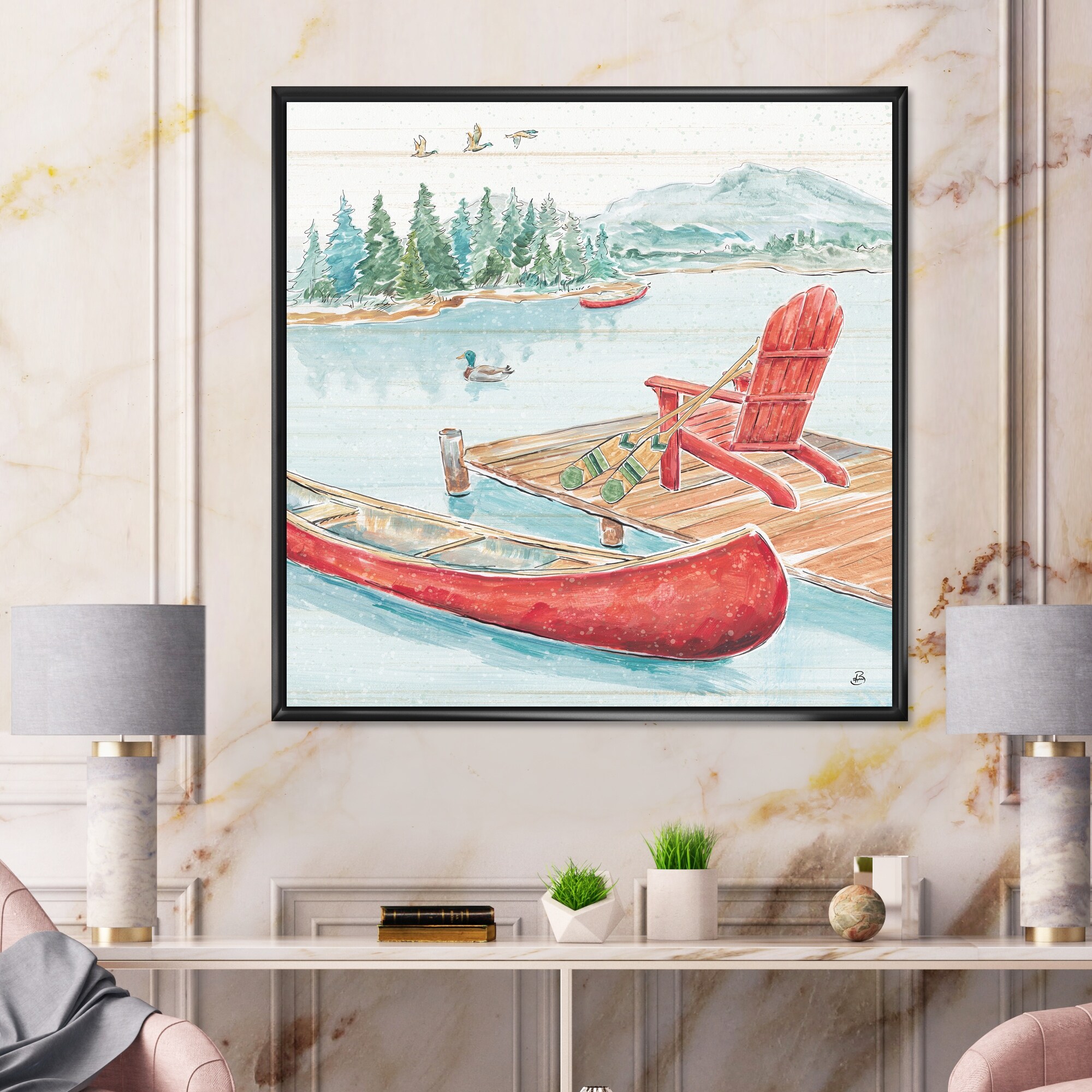 Designart "Lake Moments IV" Lake House Framed Canvas