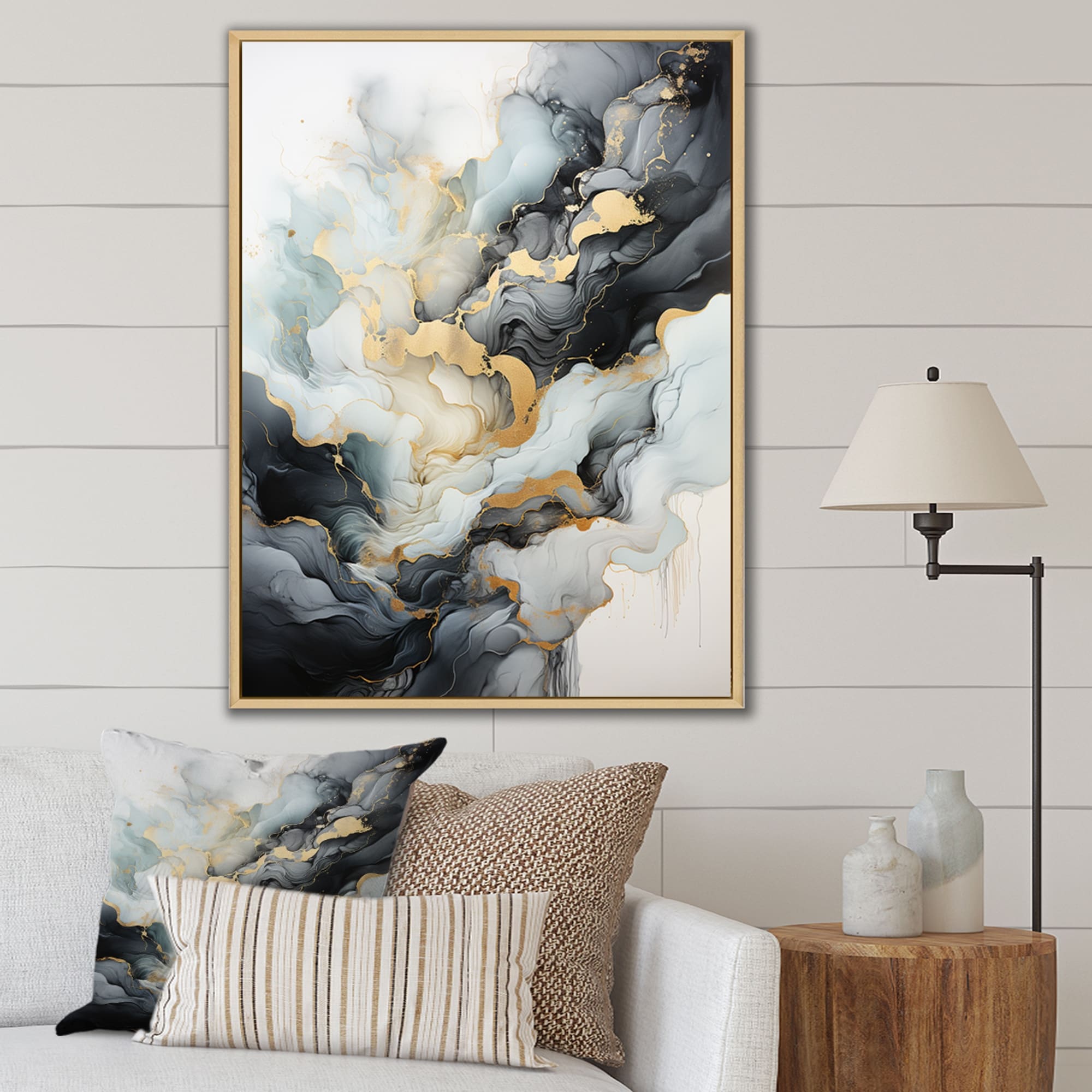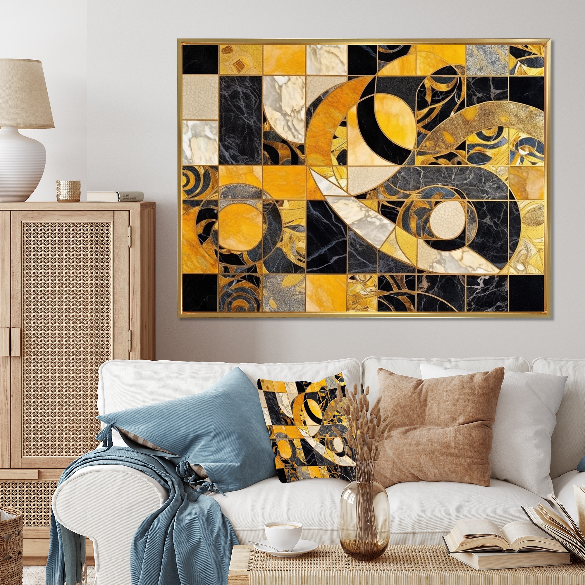Designart "Gold Black Gold And Black in Motion IV" Abstract Shapes Framed Canvas Art Print