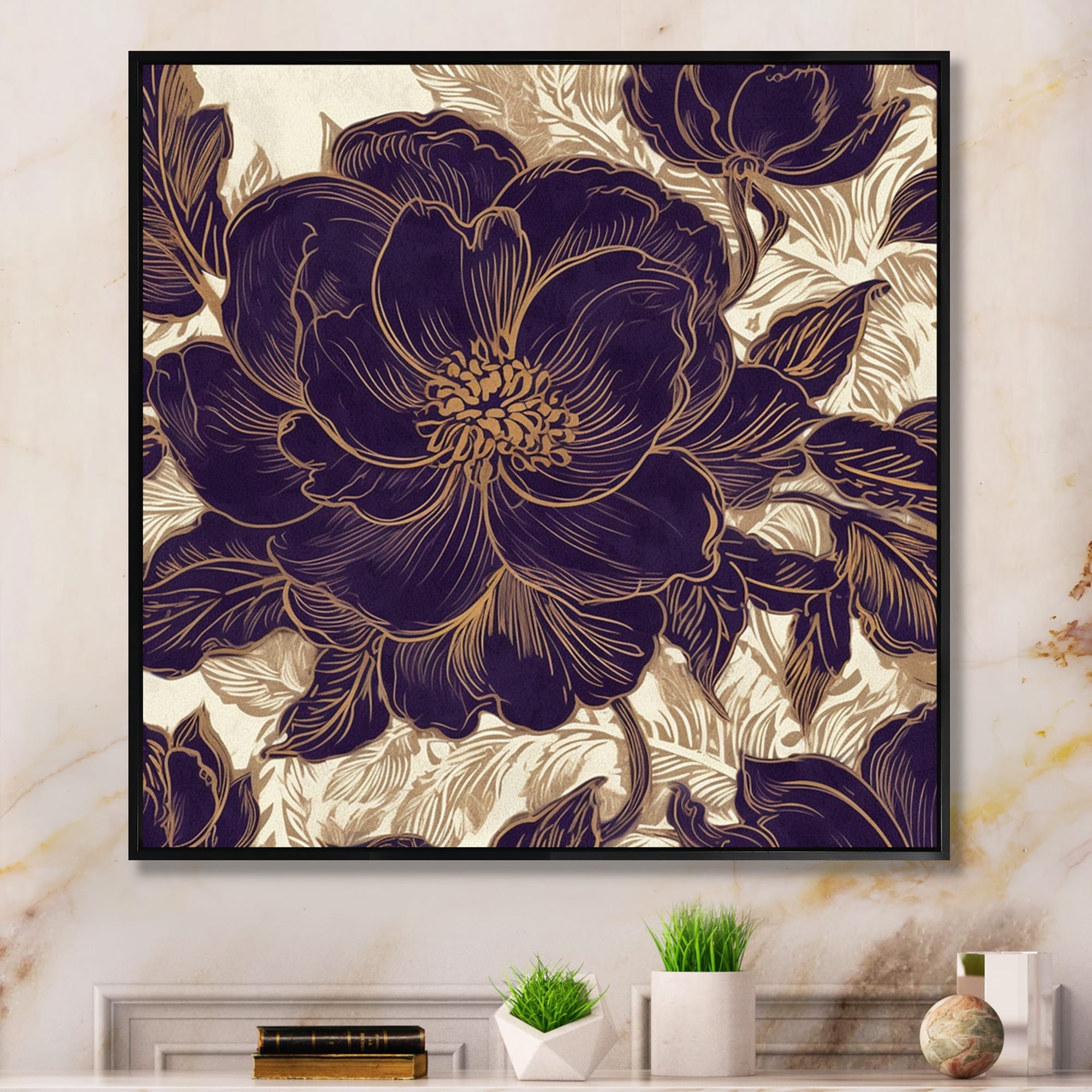 Designart "Blue Gold Peonies Emotions Ii" Floral Peony Framed Canvas Wall Art