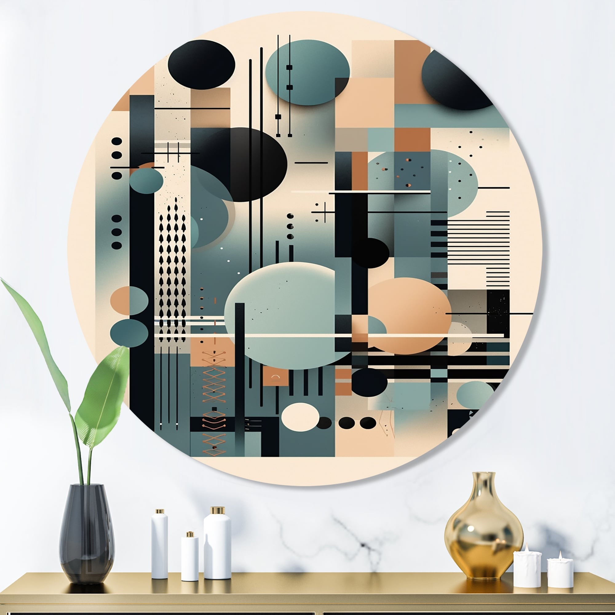 Designart "Blue And Black Symmetry in Motion II" Modern Geometric Metal Round Wall Art