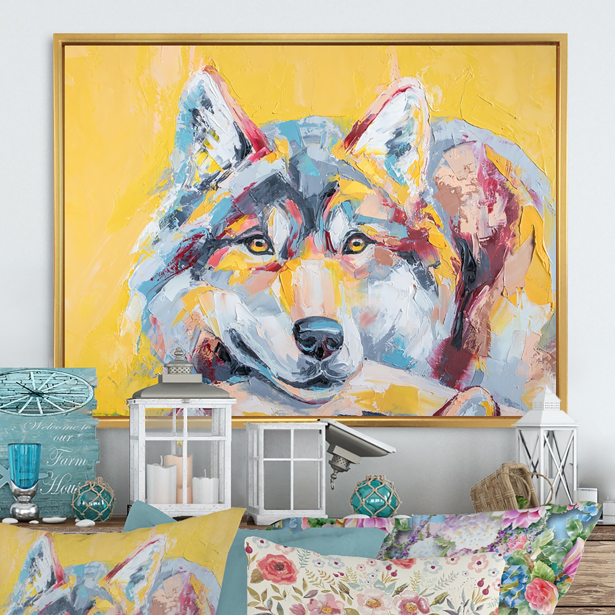 Designart "Colorful Wolf Wildlife Emotion IV" Traditional Framed Canvas Wall Art