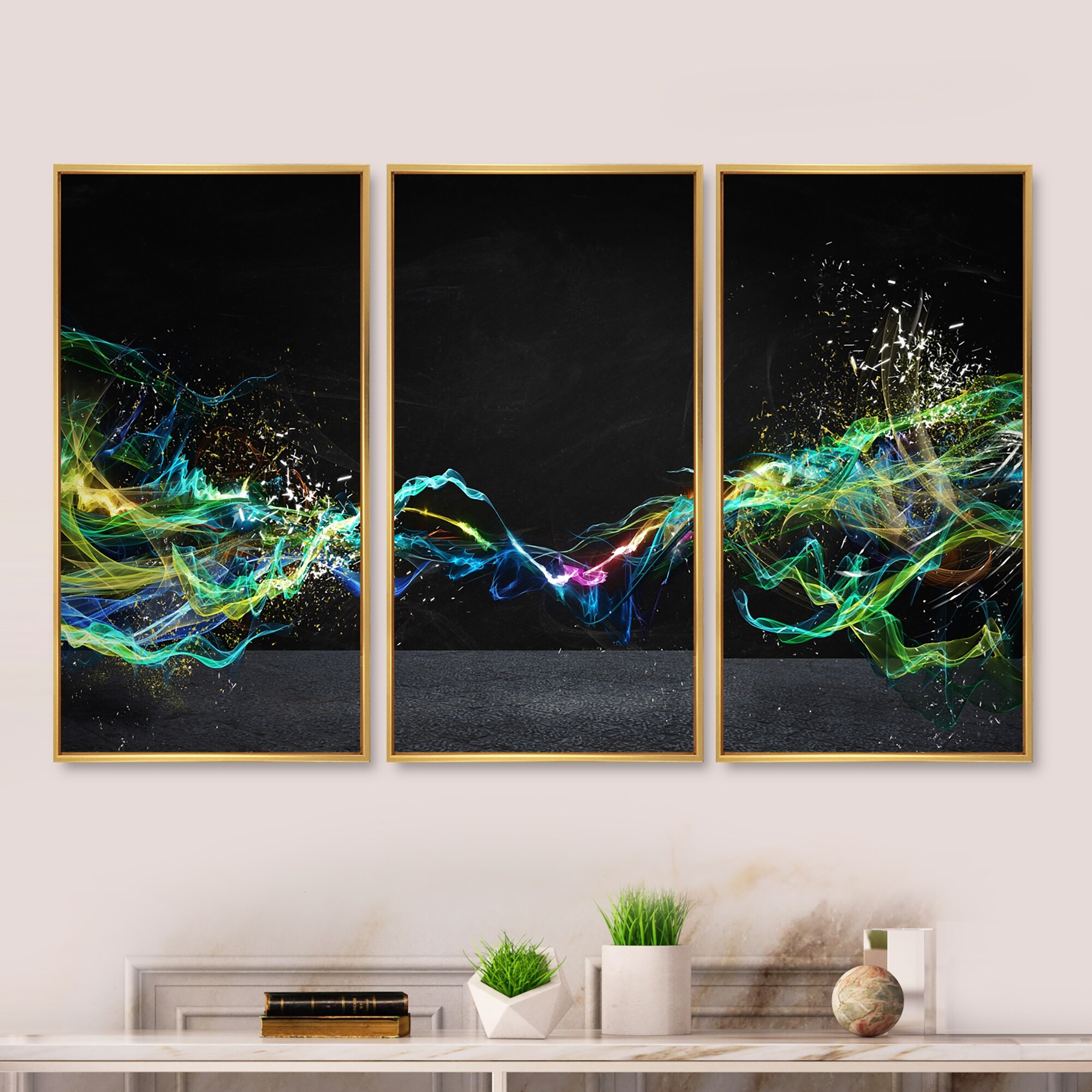 Designart "Abstract Motion Banner" Abstract Framed Canvas Wall Art Set of 3 - 4 Colors of Frames