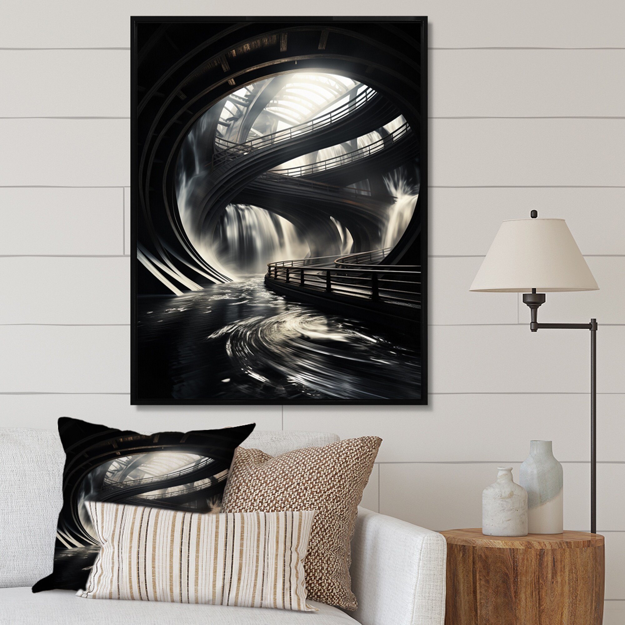 Designart "Grey Modern Bridge in Motion II" Bridges Framed Canvas Wall Art