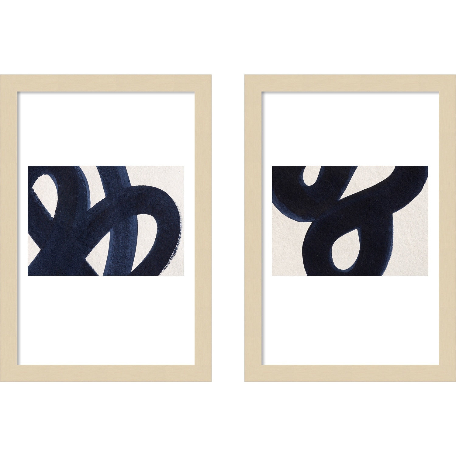 Designart "Blue And Black Symmetry in Motion I" Modern Geometric Framed Canvas Prints