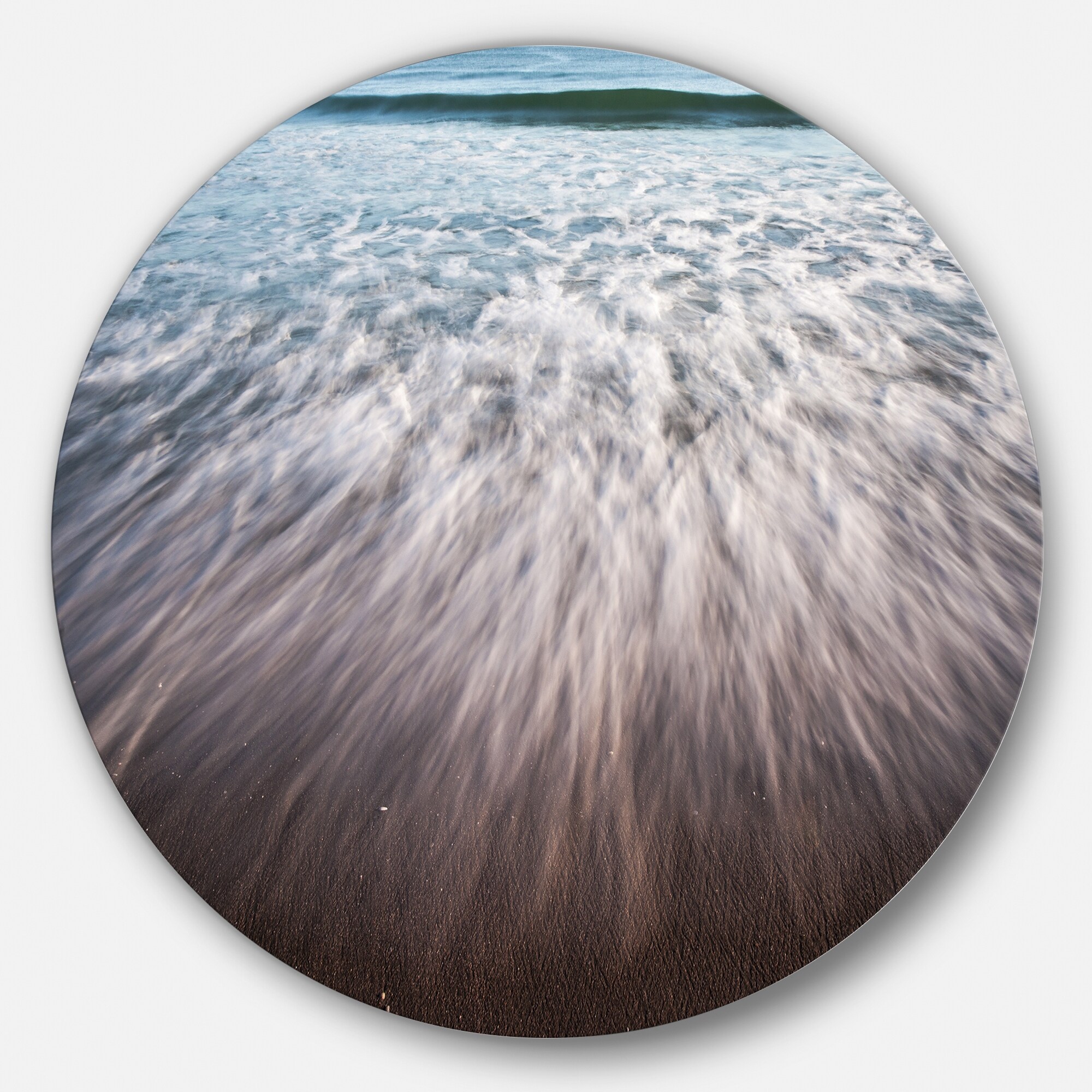 Designart 'Ocean Beach Water Motion' Seashore Circle Wall Art