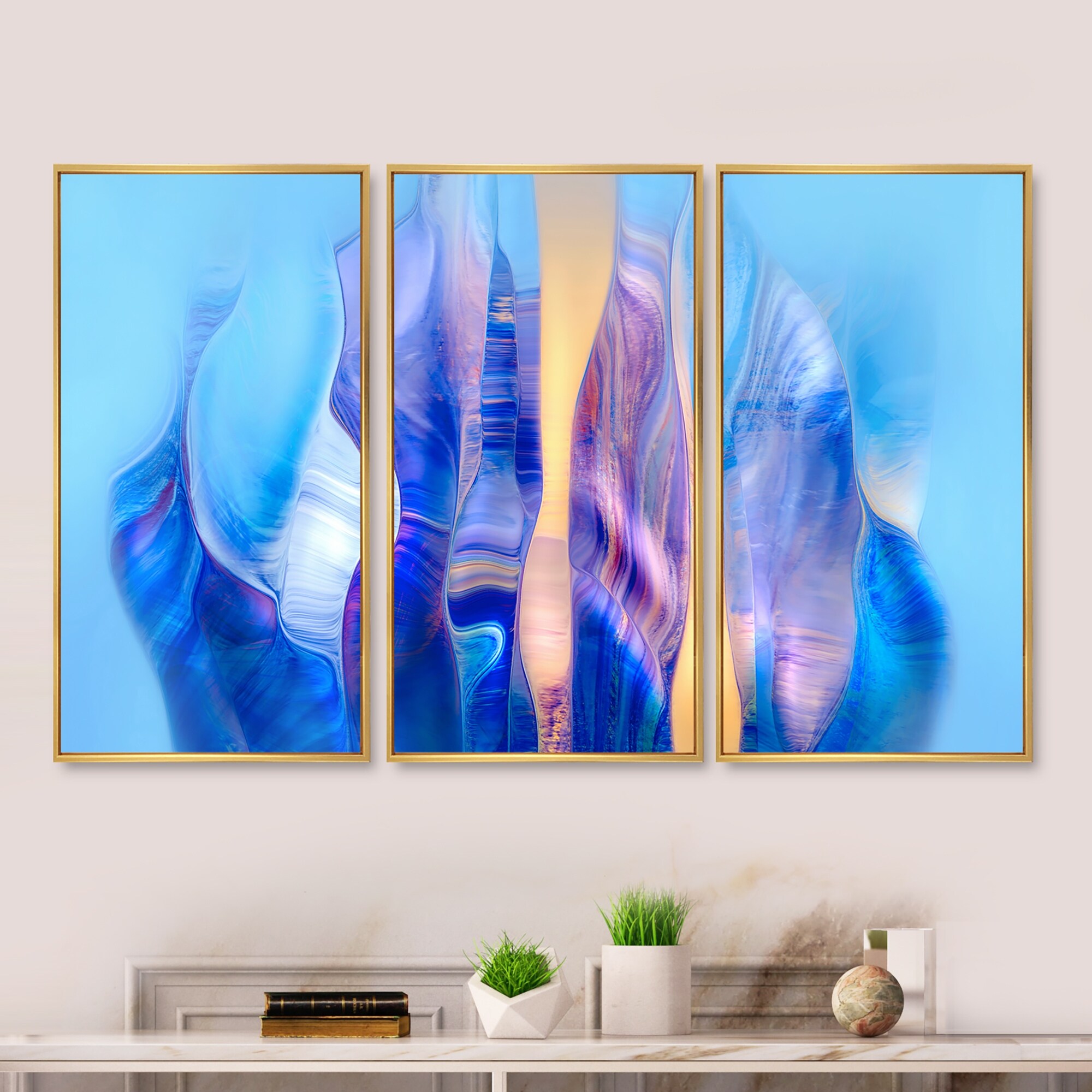 Designart "Colorful Twisted Wavy Shape in Motion I" Modern Framed Art Prints Set of 3 - 4 Colors of Frames