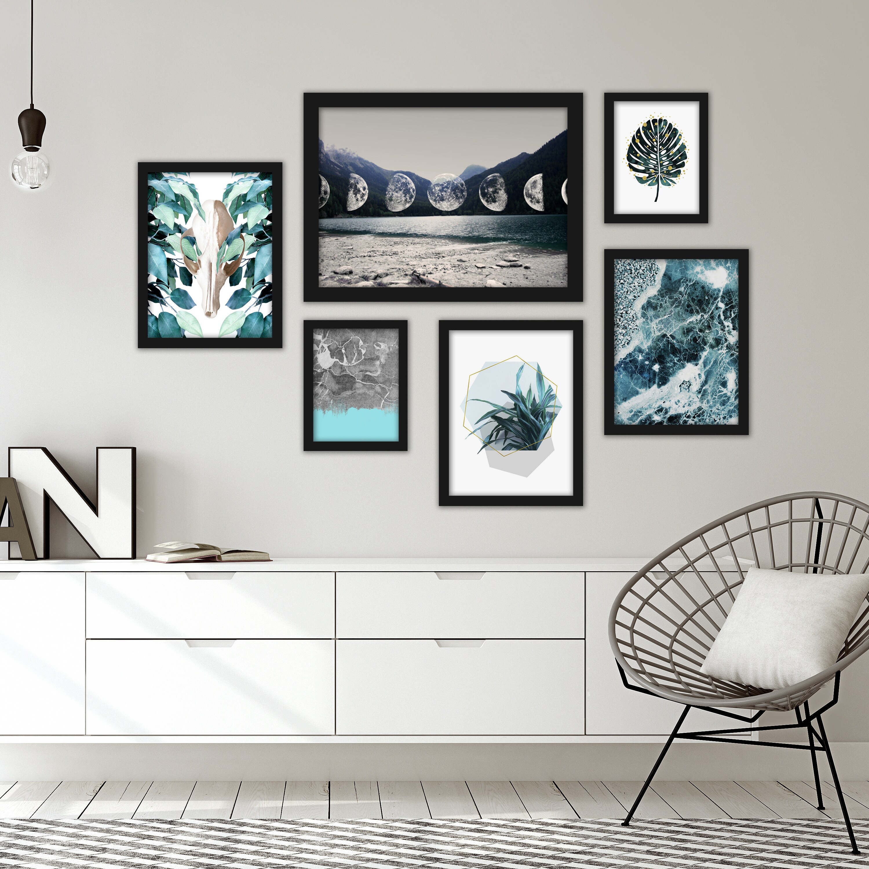 Contemporary BlueGrey 6 Piece Framed Print Gallery Wall Art Set