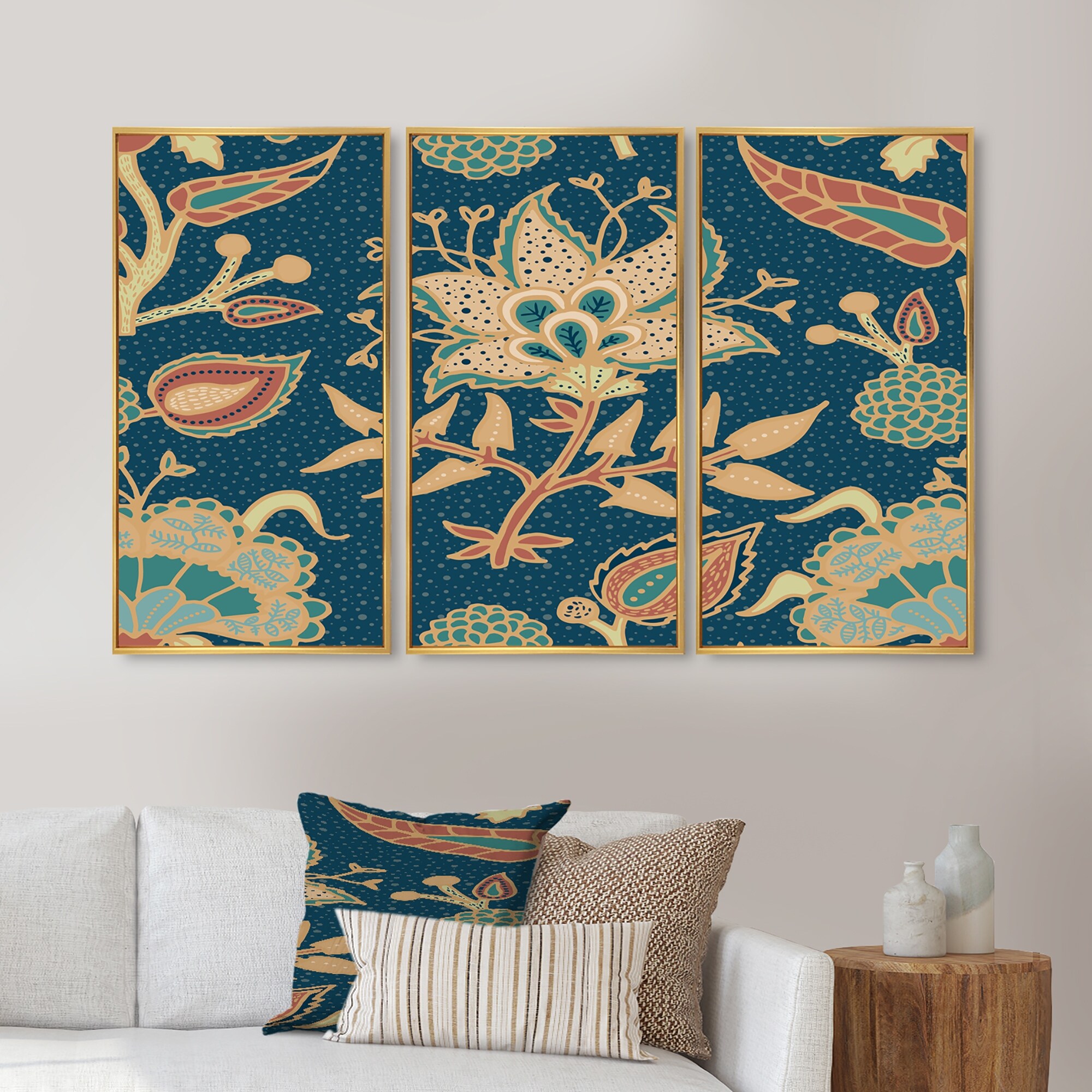 Designart "National Indian Paisley" Bohemian Framed Canvas Wall Art Set of 3 - 4 Colors of Frames