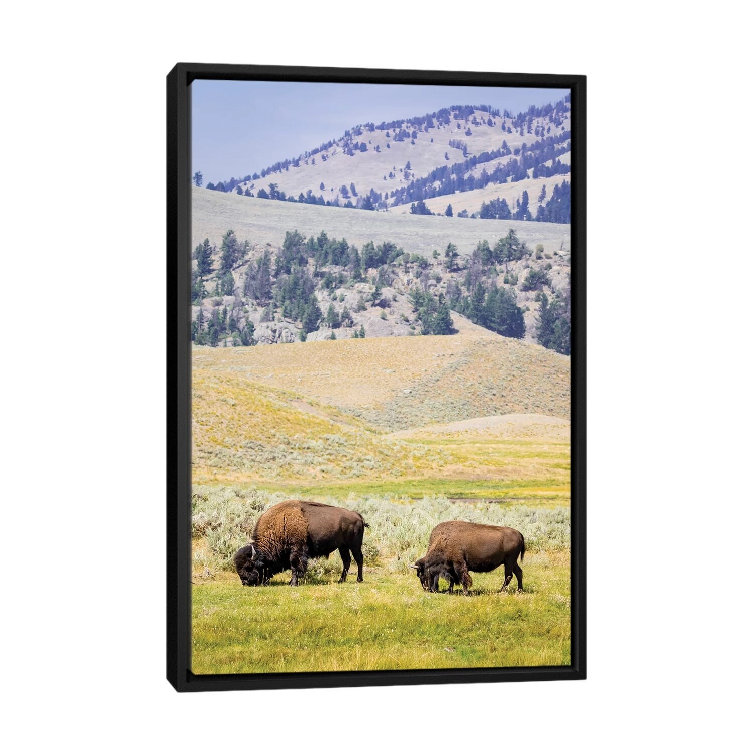 iCanvas "USA, Wyoming, Yellowstone National Park. Two buffalos in grassy field." by Jaynes Gallery Framed
