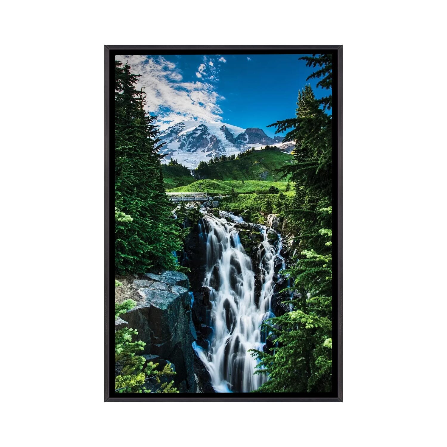 iCanvas "USA, Washington State, Mount Rainier National Park, Mount Rainier, waterfall" by George Theodore Framed