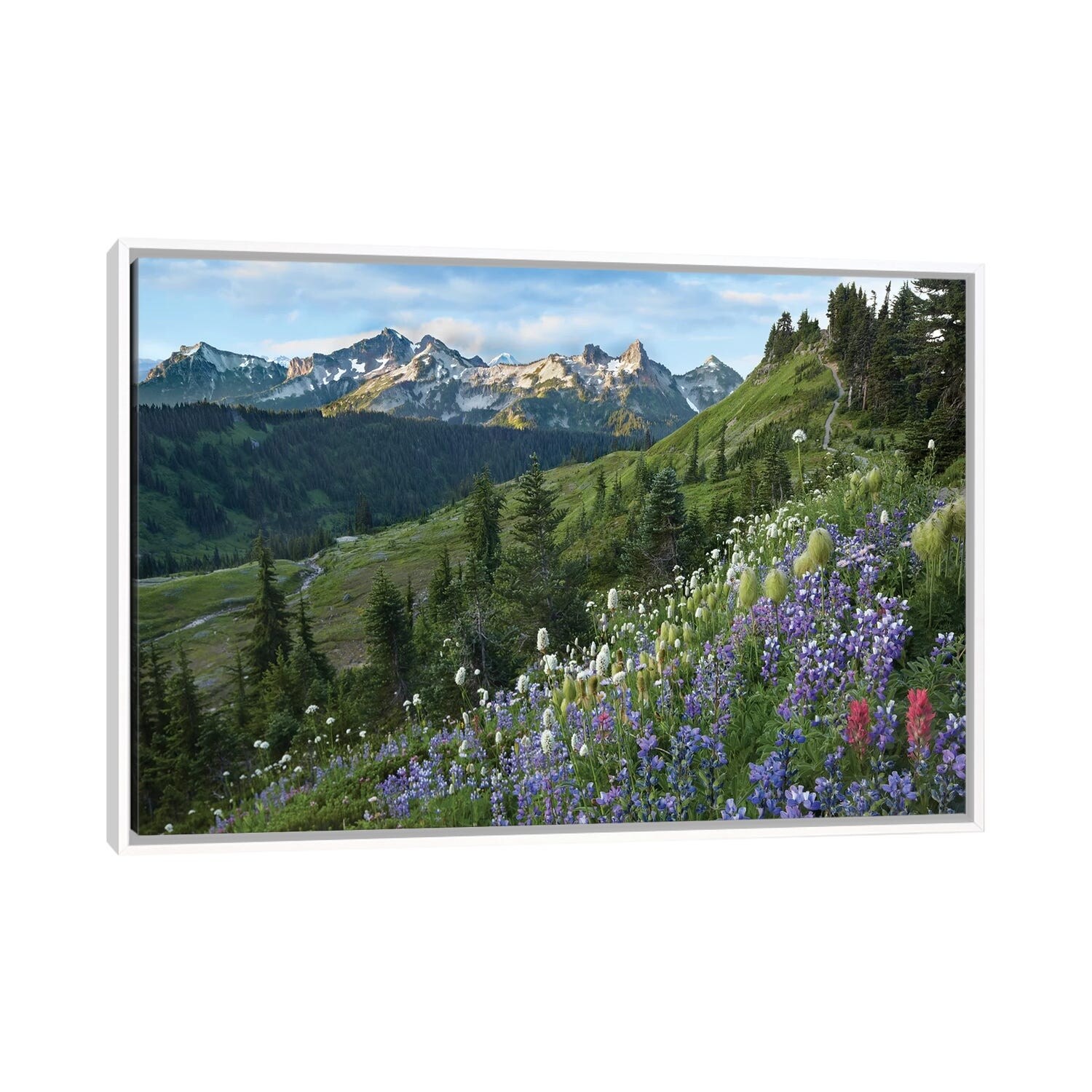 iCanvas "Wildflowers And Tatoosh Range, Mount Rainier National Park, Washington" by Tim Fitzharris Framed Canvas Print