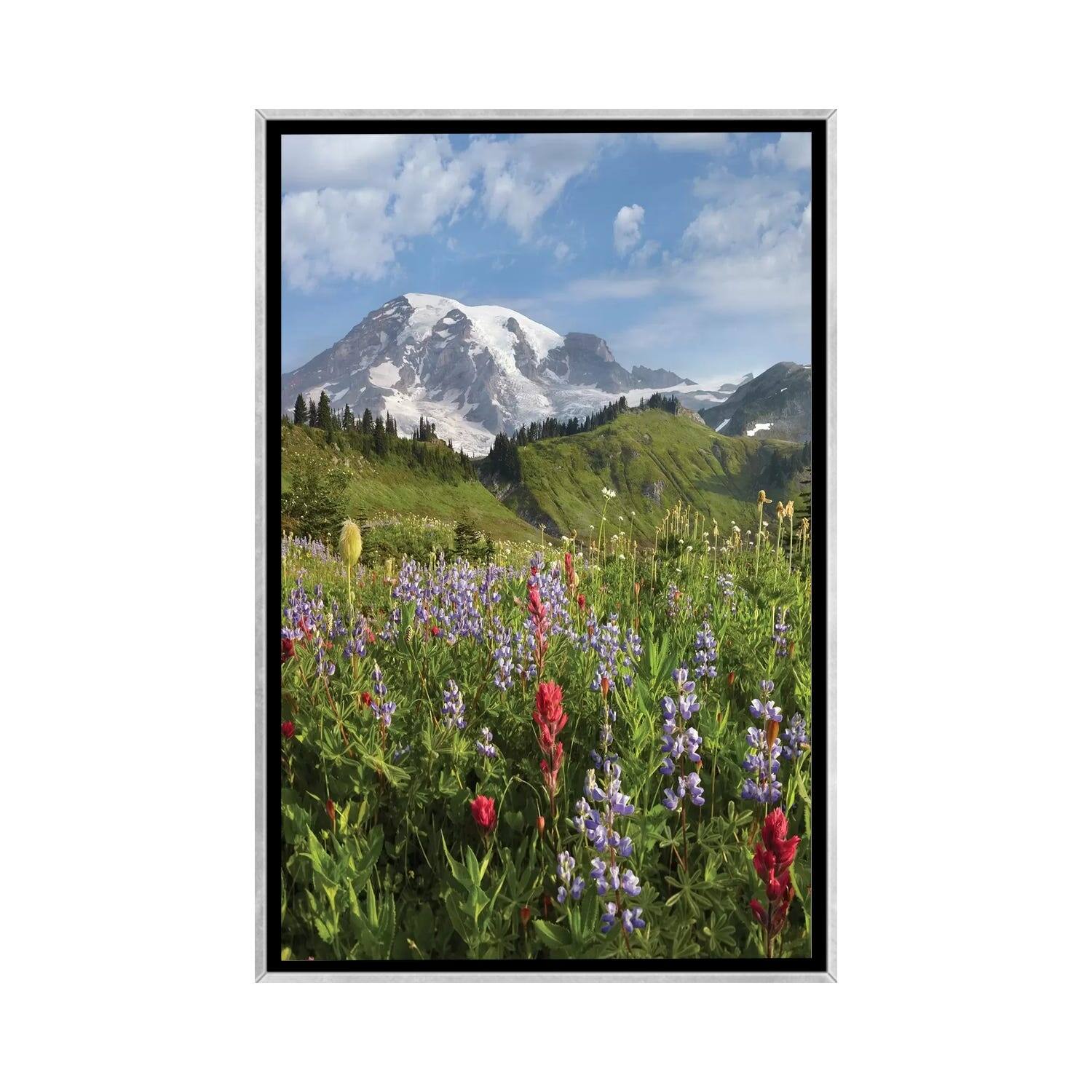 iCanvas "Paradise Meadow And Mount Rainier, Mount Rainier National Park, Washington - Vertical" by Tim Fitzharris Framed