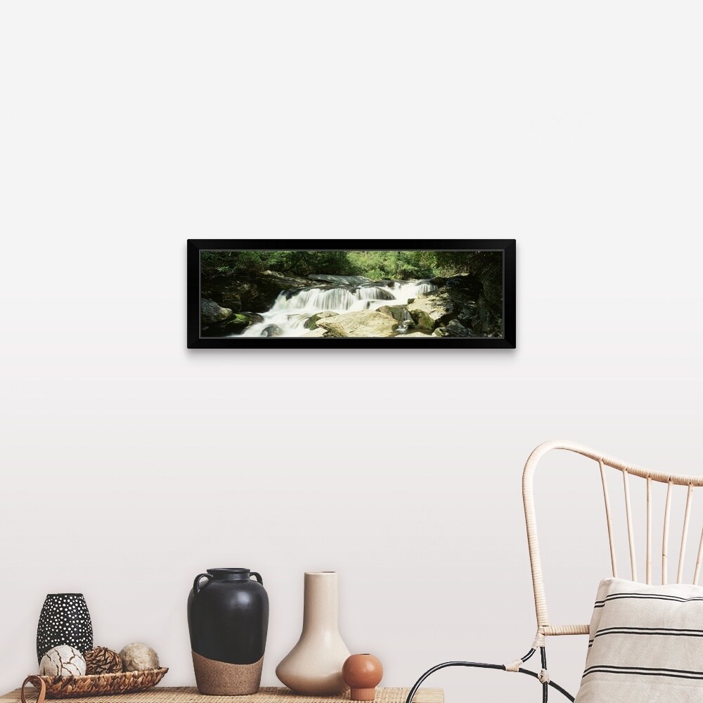 "North Carolina, Nantahala National Forest, River flowing through the forest" Black Framed Print