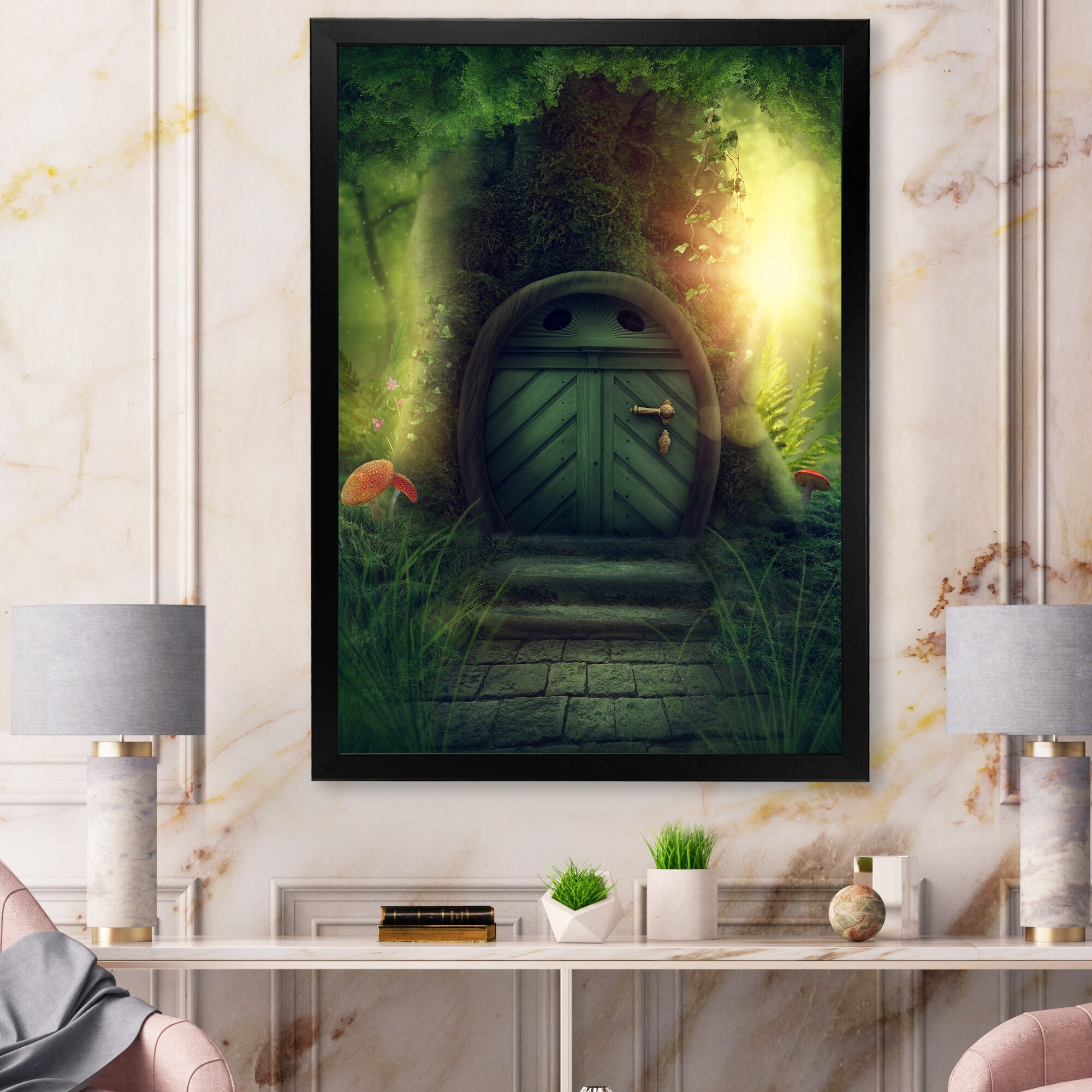 Designart "Door In Big Magic Tree" Novelty Framed Art Print