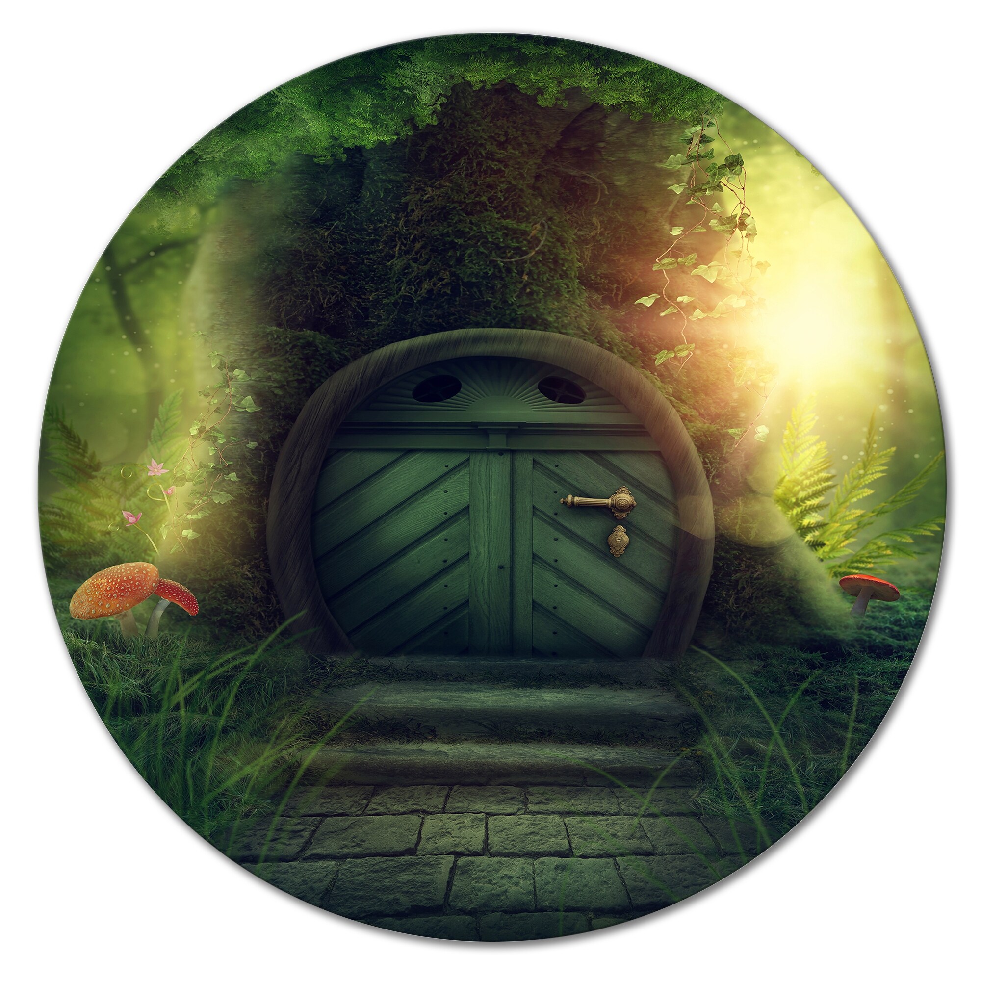 Designart 'Door In Big Magic Tree' Novelty Metal Circle Wall Art