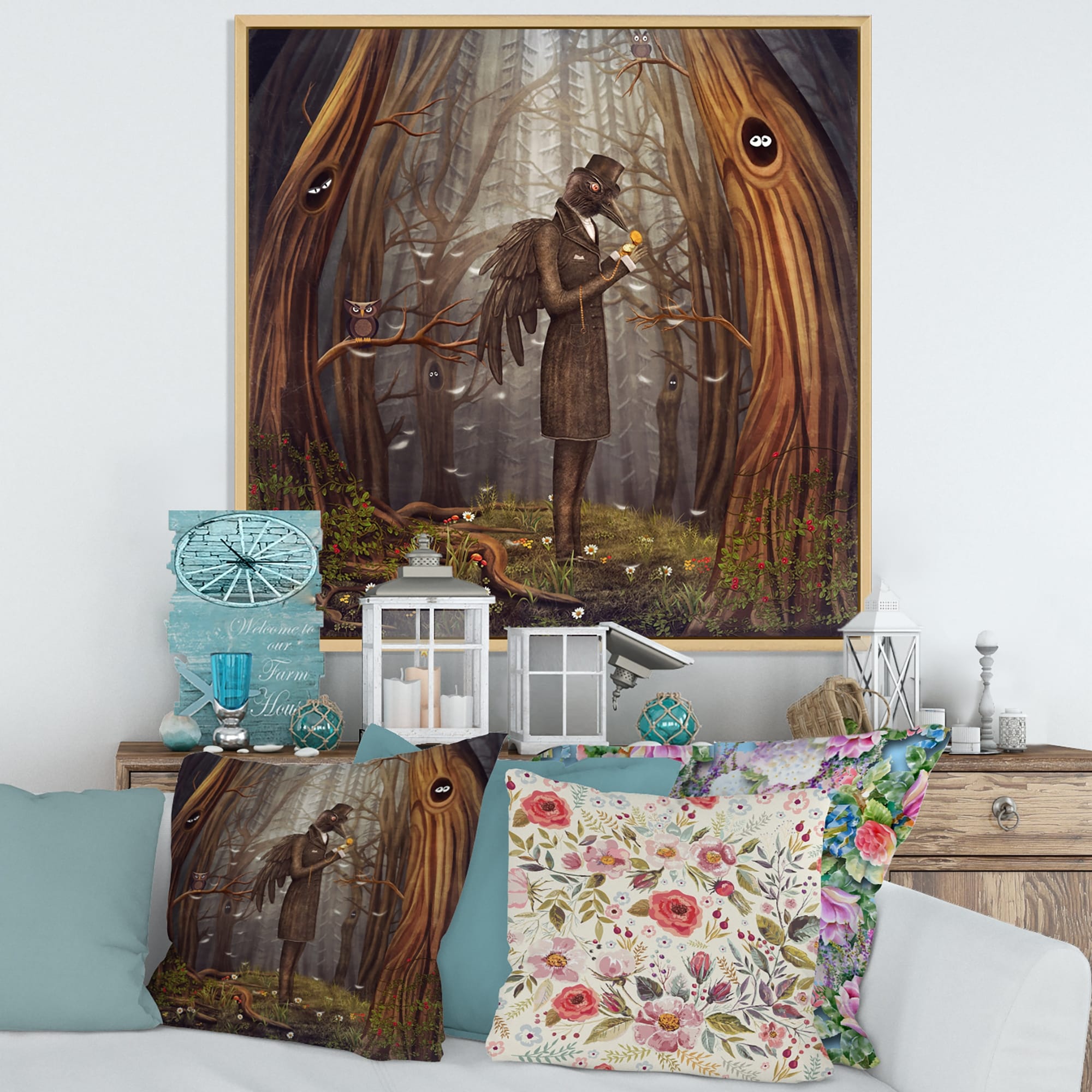 Designart "Raven Man in Forest" Novelty Framed Canvas Wall Art Print
