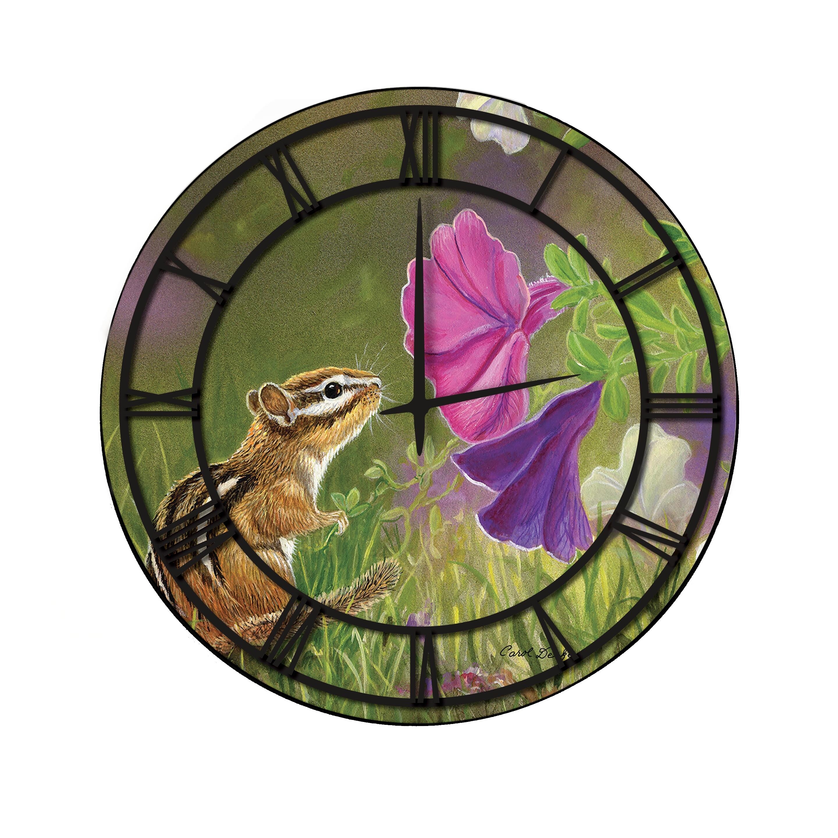 Wall Clock with Full Coverage Art - Chipmunk in the Garden - Black Numbers - 24" x 24"
