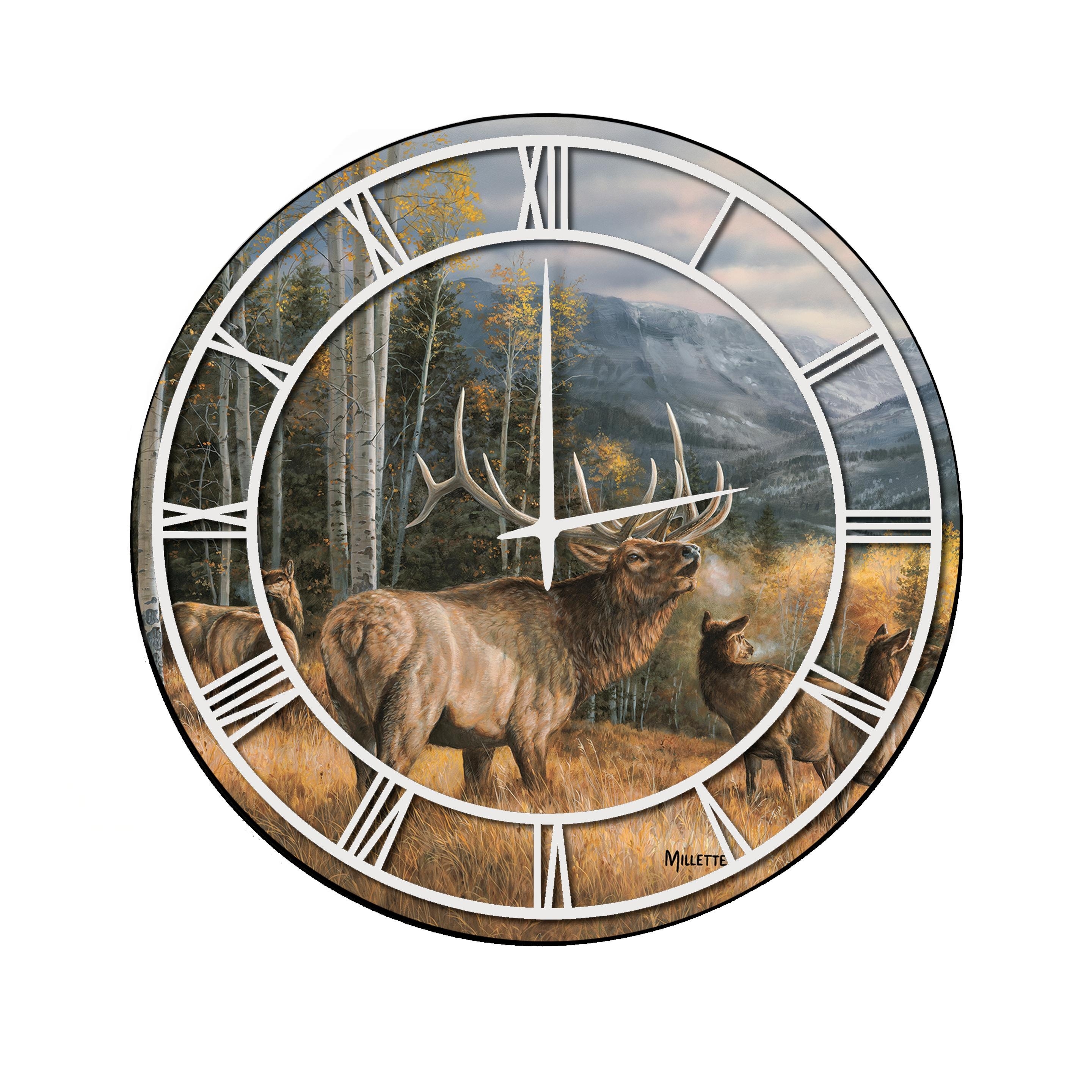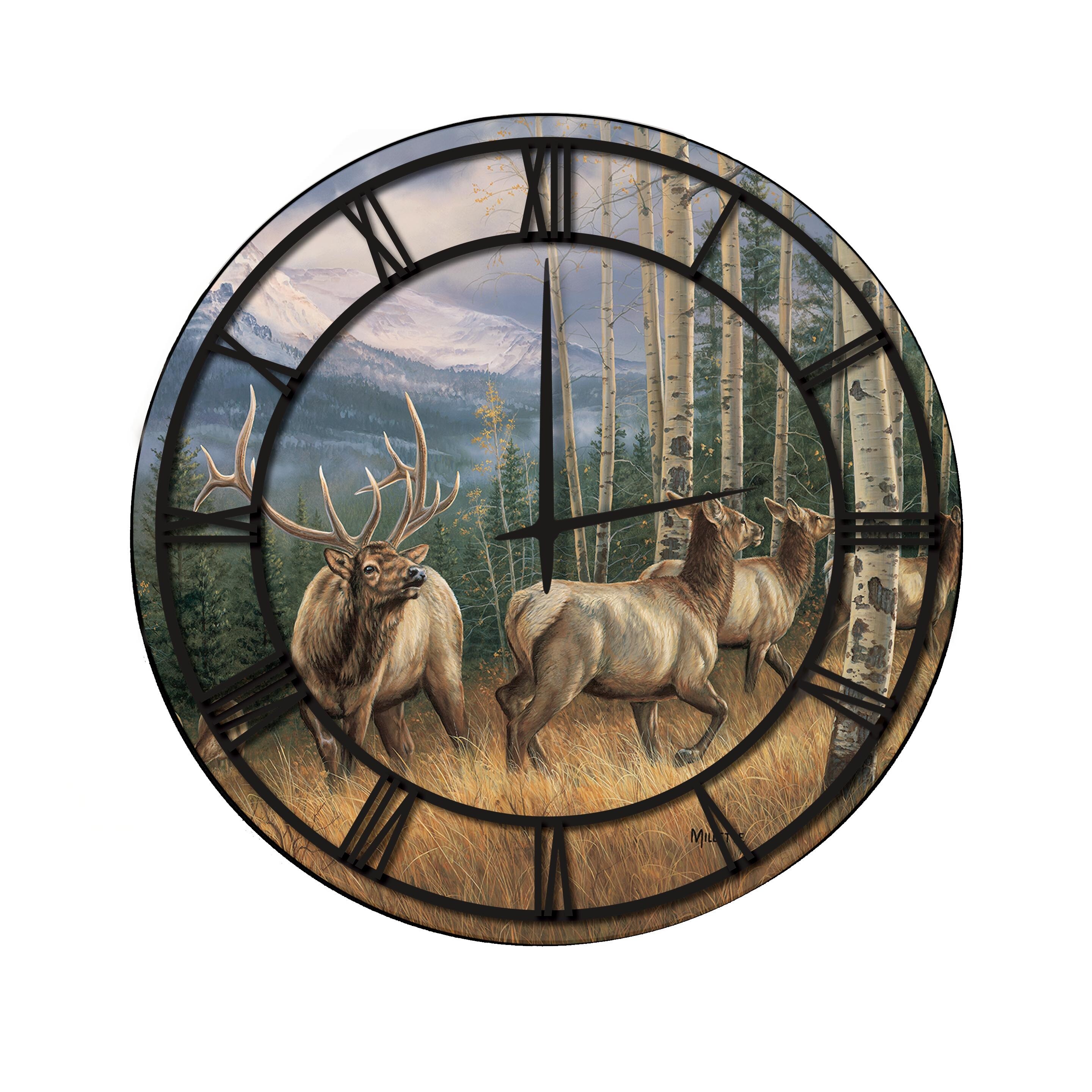 Wall Clock with Full Coverage Art - Back Country Elk - Black Numbers - 24" x 24"