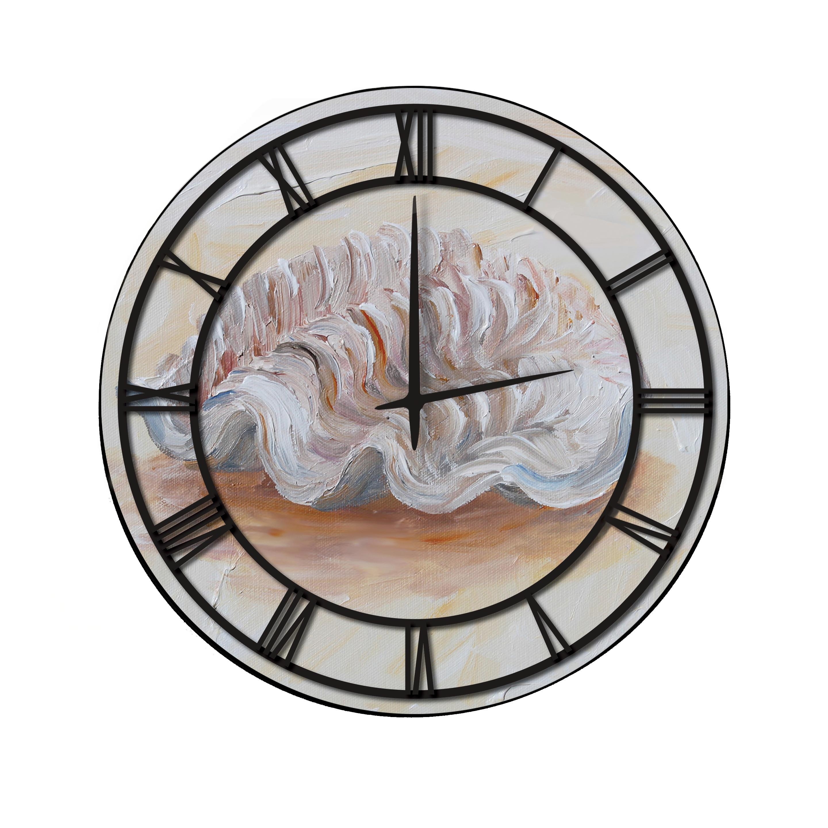 Wall Clock with Full Coverage Art - Sea Shell #1 - Black Numbers - 24" x 24"