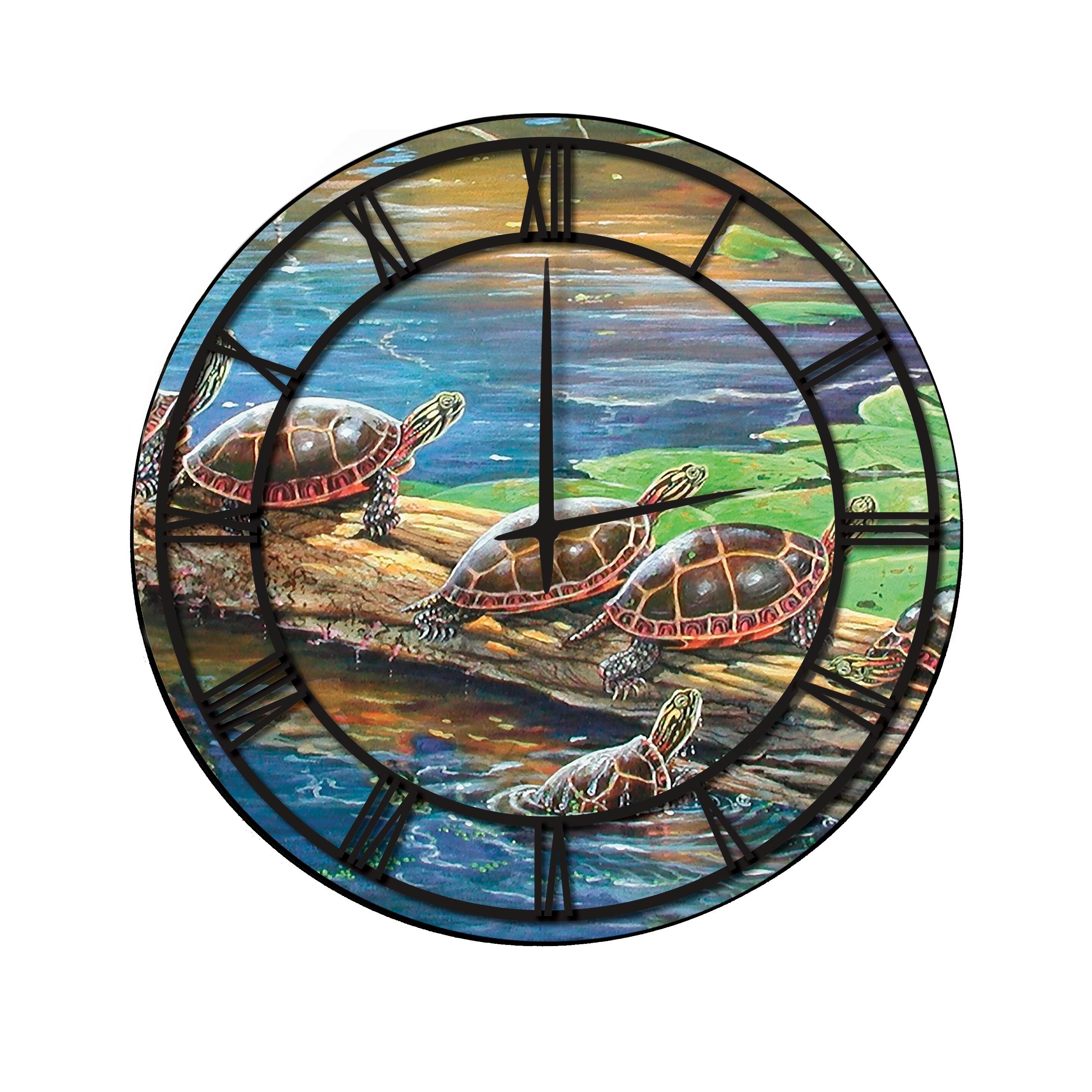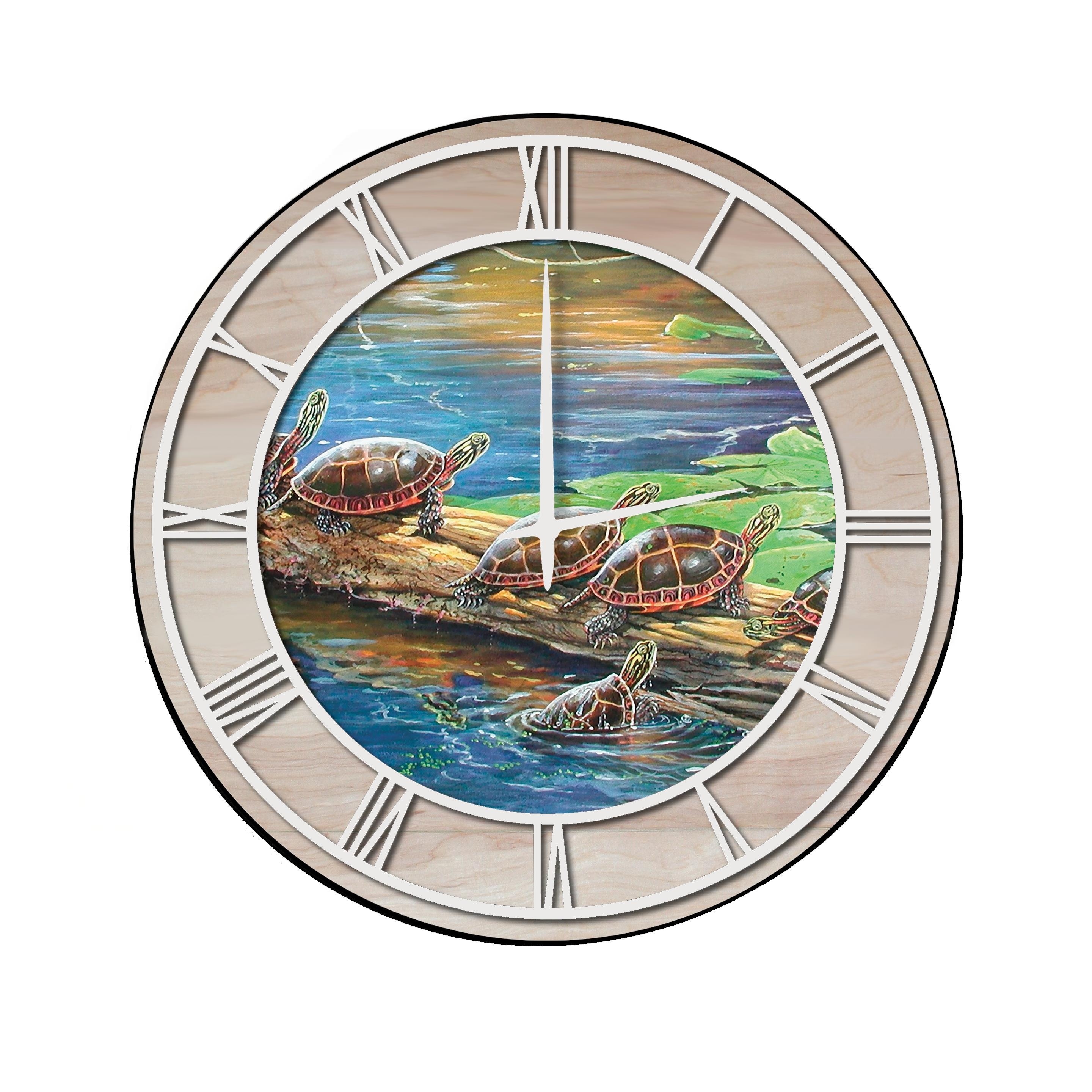 Wall Clock with Full Coverage Art - Back Water Mallards - White Numbers - 24" x 24"