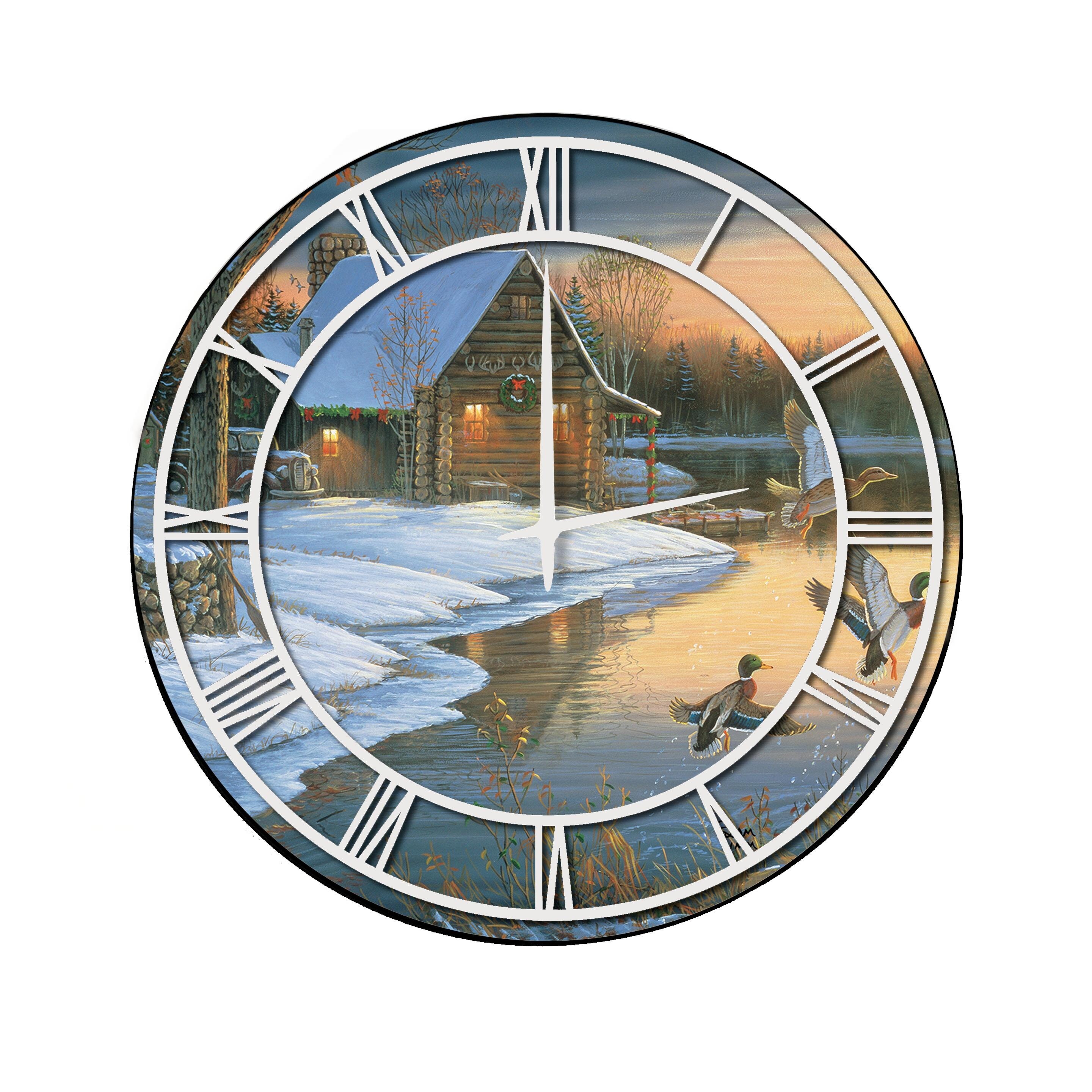 Wall Clock with Full Coverage Art - Lake Cabin - White Numbers - 24" x 24"
