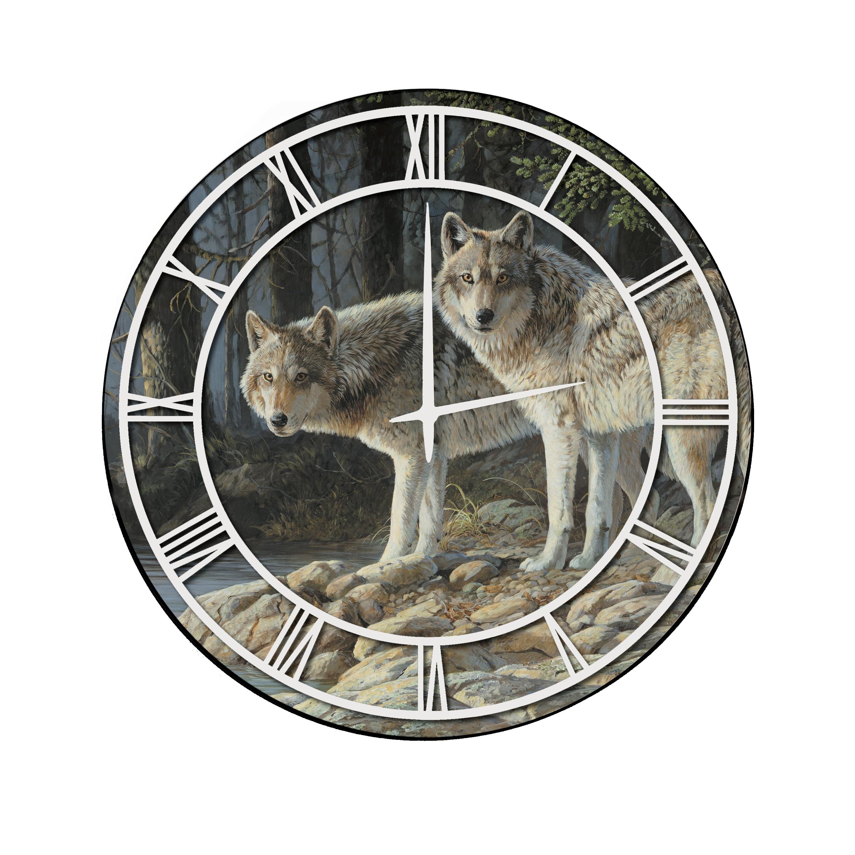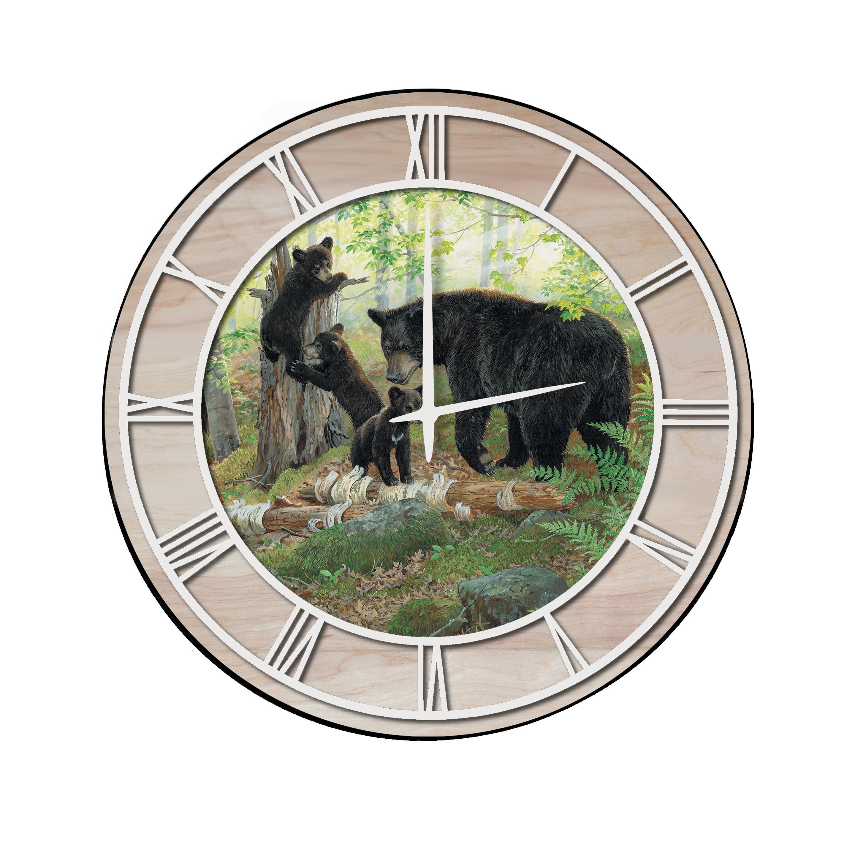 Wall Clock with Natural Woodgrain Accent - Birchwood Bears - White Numbers - 24" x 24"