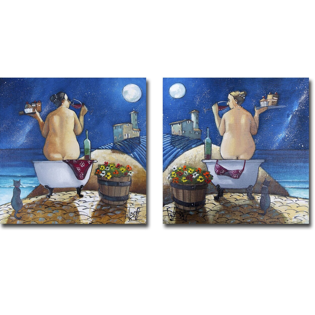 Bath No. 1 & No. 2 by Ronald West 2-pc Gallery Wrapped Canvas Giclee Set (18 in x 18 in Each Canvas in Set)