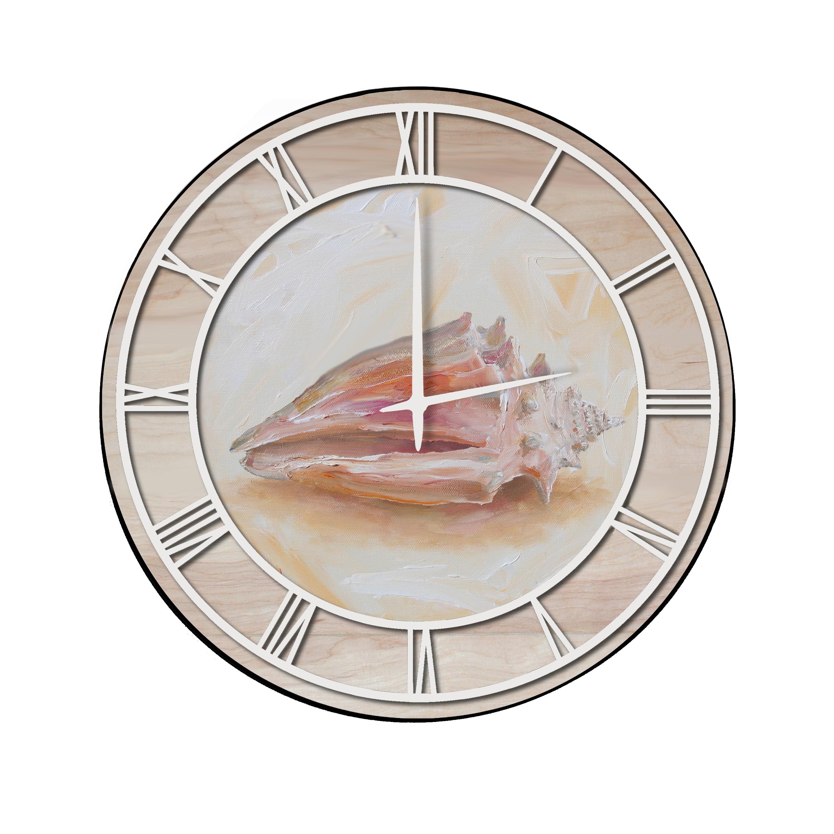 Wall Clock with Natural Woodgrain Accent - Sea Shell #2 - White Numbers - 24" x 24"