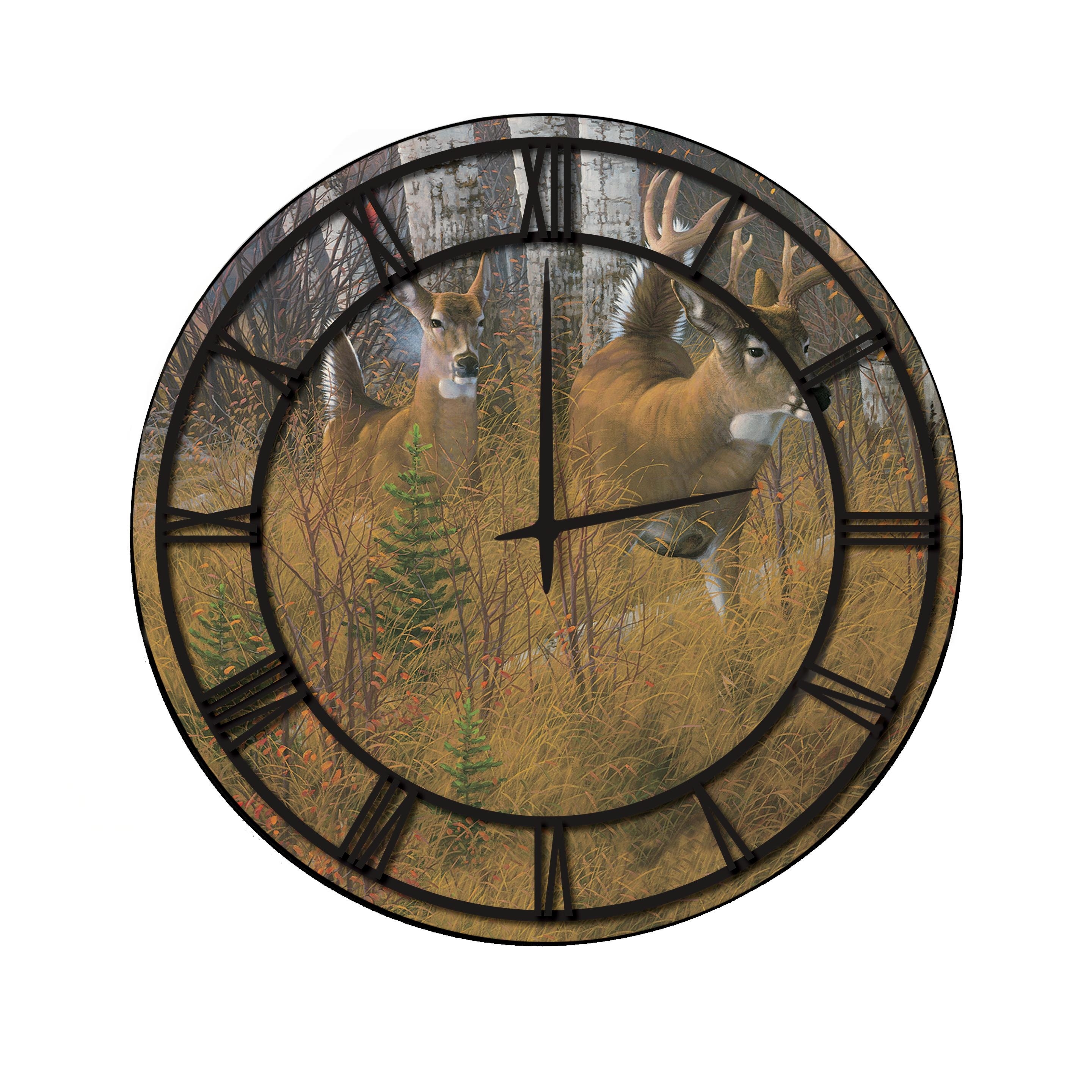 Wall Clock with Full Coverage Art - Meadow Music Elk - White Numbers - 24" x 24"